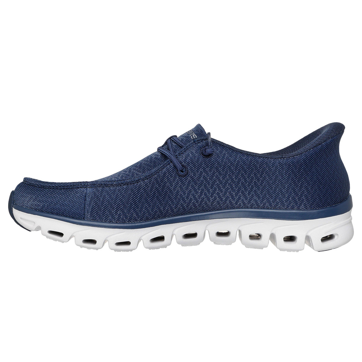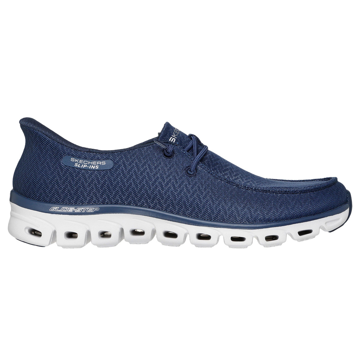 Step into effortless style and comfort with Skechers Hands Free Slip-ins®: Glide-Step® – Ocean Ave. Designed with our exclusive Heel Pillow, this vegan moc-toe slip-on features a mesh upper with tied-off stretch laces, Skechers Air-Cooled Memory Foam® comfort insole, and a Glide-Step® geometric cushioned midsole.
