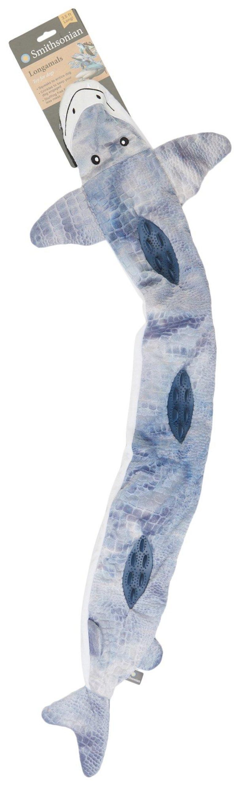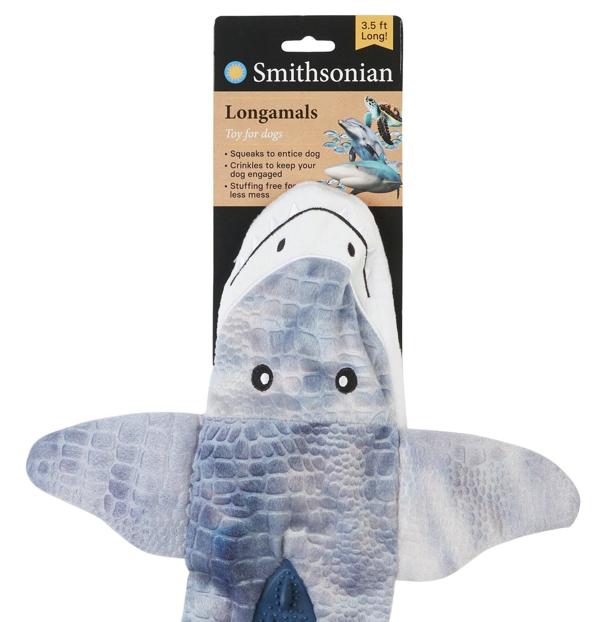 Keep playtime exciting with the Longamals Shark Dog Toy, designed to squeak and crinkle for maximum fun. This large, stuffing-free toy offers interactive textures that engage and entertain, while reducing mess. Perfect for dogs who love to tug, shake or cuddle, it brings big-time fun with a smart, low-maintenance design. Measures approximately 42 in x 5 in x 1 in.