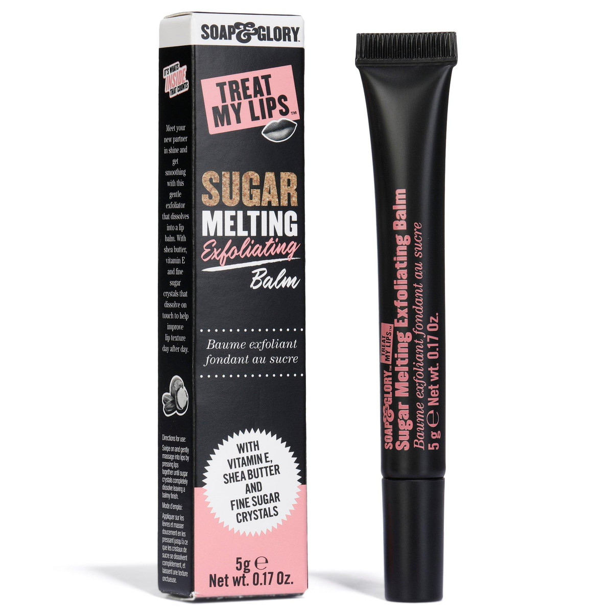 Treat My Lips Sugar Exfoliating Balm gently polishes with fine sugar crystals while nourishing with shea butter and vitamin E. This leave-on formula softens, hydrates and helps protect lips with anti-aging benefits, improving texture over time. Lips feel smooth, supple and ready for anythingday after day. Contains .17 oz.