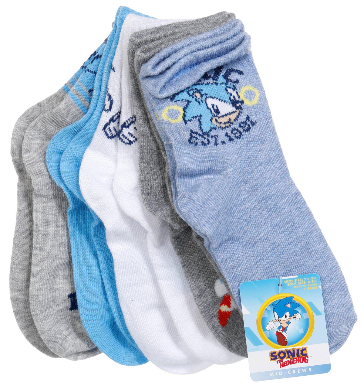 This 5-pack of boys’ Sonic the Hedgehog crew socks features bold character designs including Sonic, Tails, and Knuckles. Sized to fit shoe sizes 7.53.5 and sock sizes 68.5, these socks are made from soft, stretchy fabric for all-day comfort. The crew length offers extra coverage and a secure fit, making them perfect for school, play, or everyday adventures.