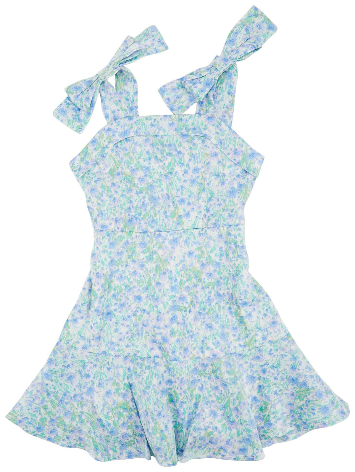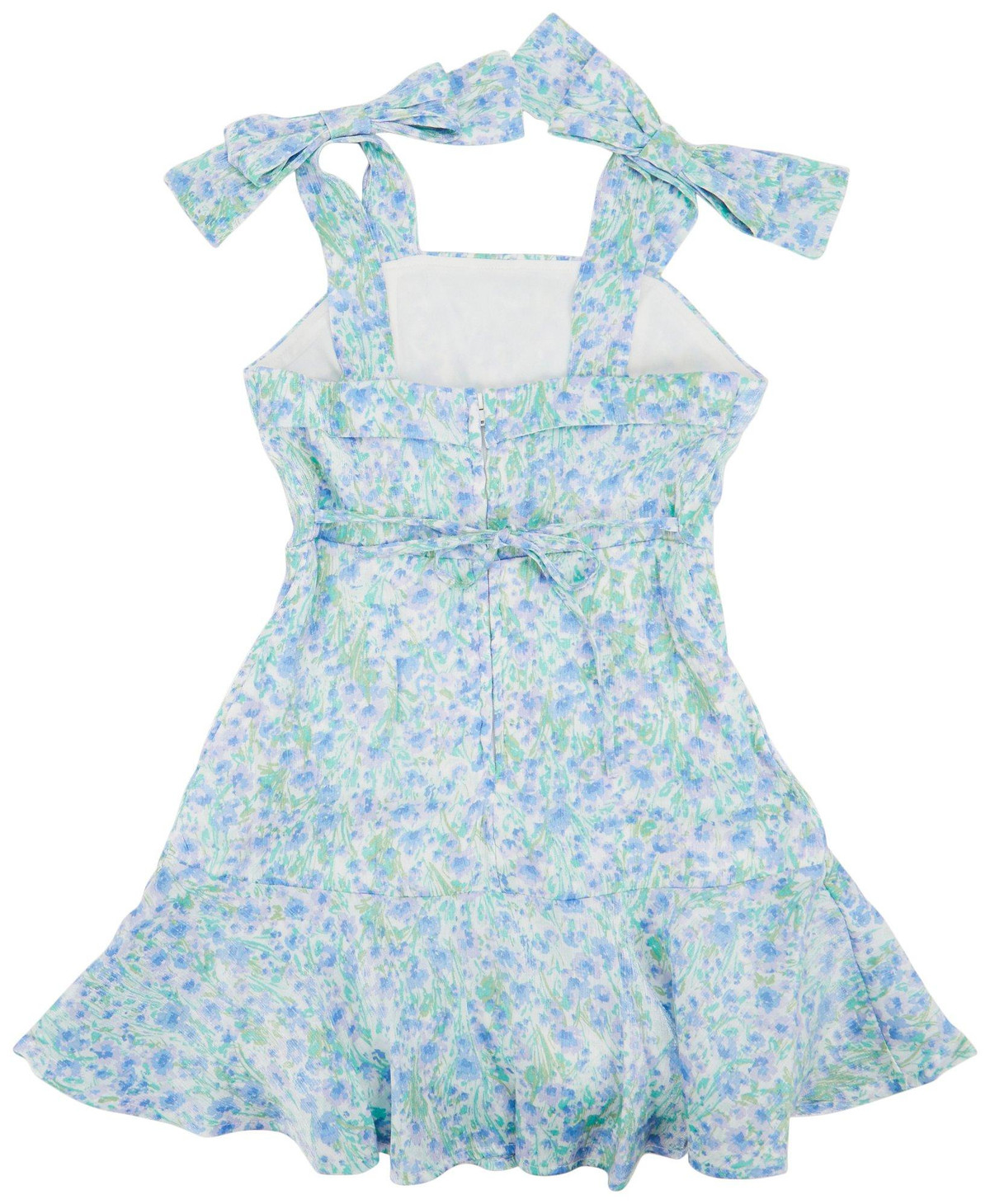 Introducing the Big Girls Bow Tank Ditsy Floral Dress, crafted from a blend of rayon and nylon for a lightweight and comfortable feel. This charming dress features a stylish ditsy floral print, a sleeveless design, and a convenient back zip entry. The ruffle hem adds a playful touch, making it perfect for special occasions or everyday wear.