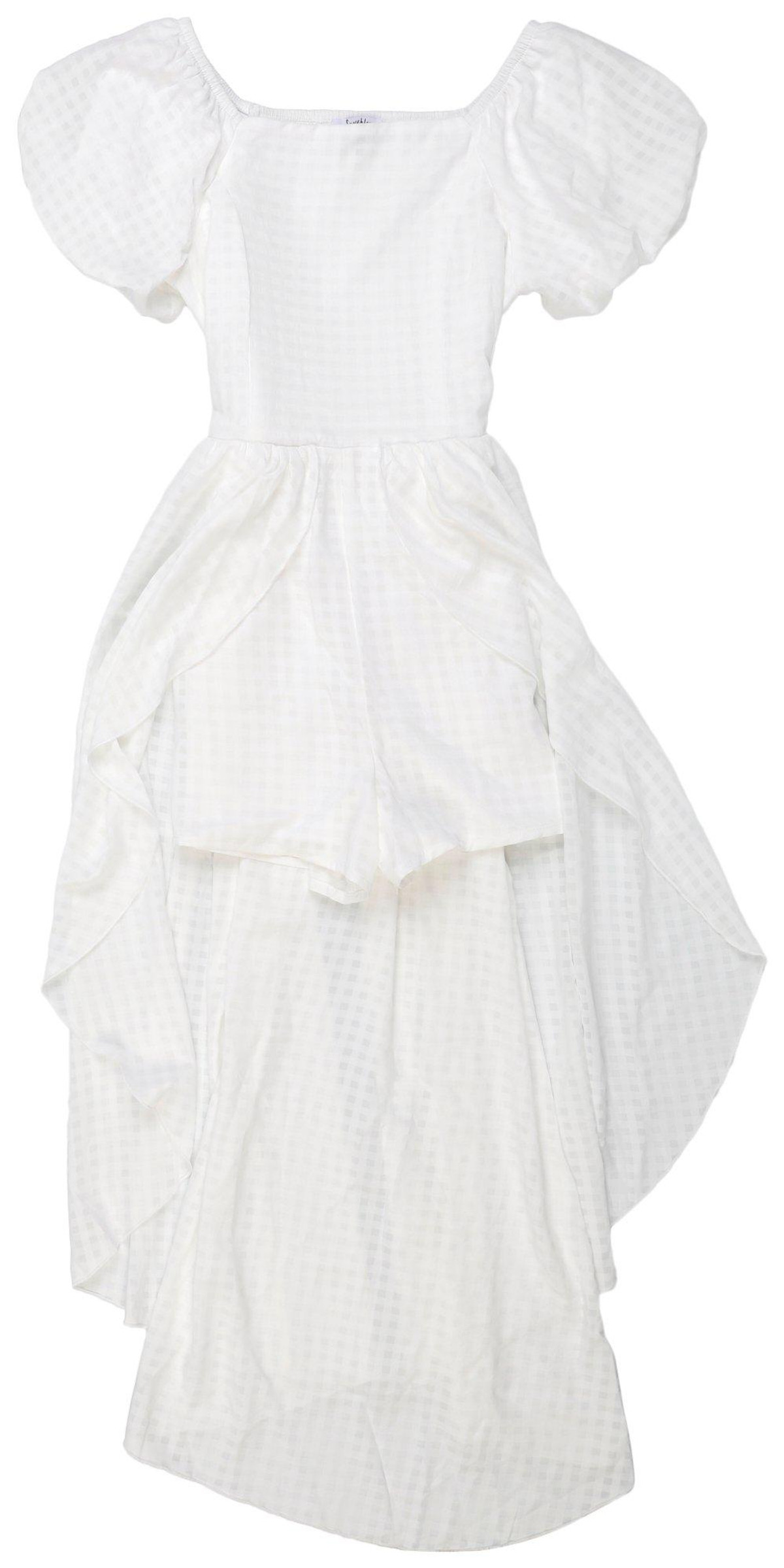 Let your little one shine in this beautifully designed Big Girls Checkered Dress with Shorts and Open Skirt. Crafted with comfort in mind, this charming dress features a smocked back and an adjustable tie in the back for a comfort fit. The soft, embossed checkered fabric and open skirt add a touch of elegance, while the fully lined shorts provides extra coverage and freedom to play. Fabrication is 100% polyester. Dress length measures approximately 49 in.