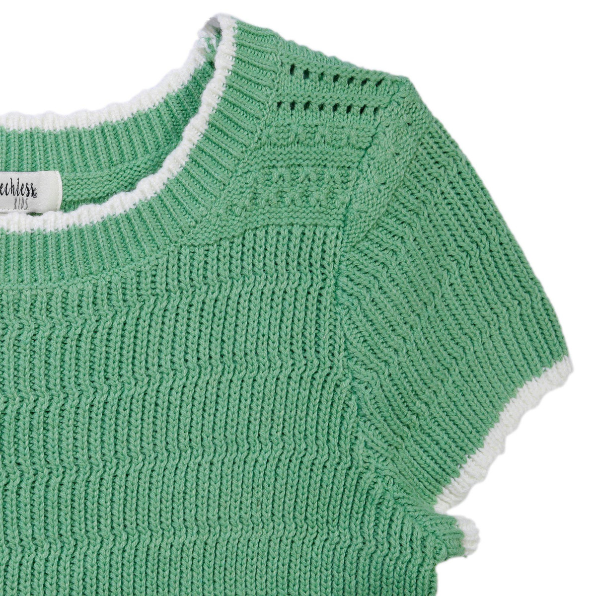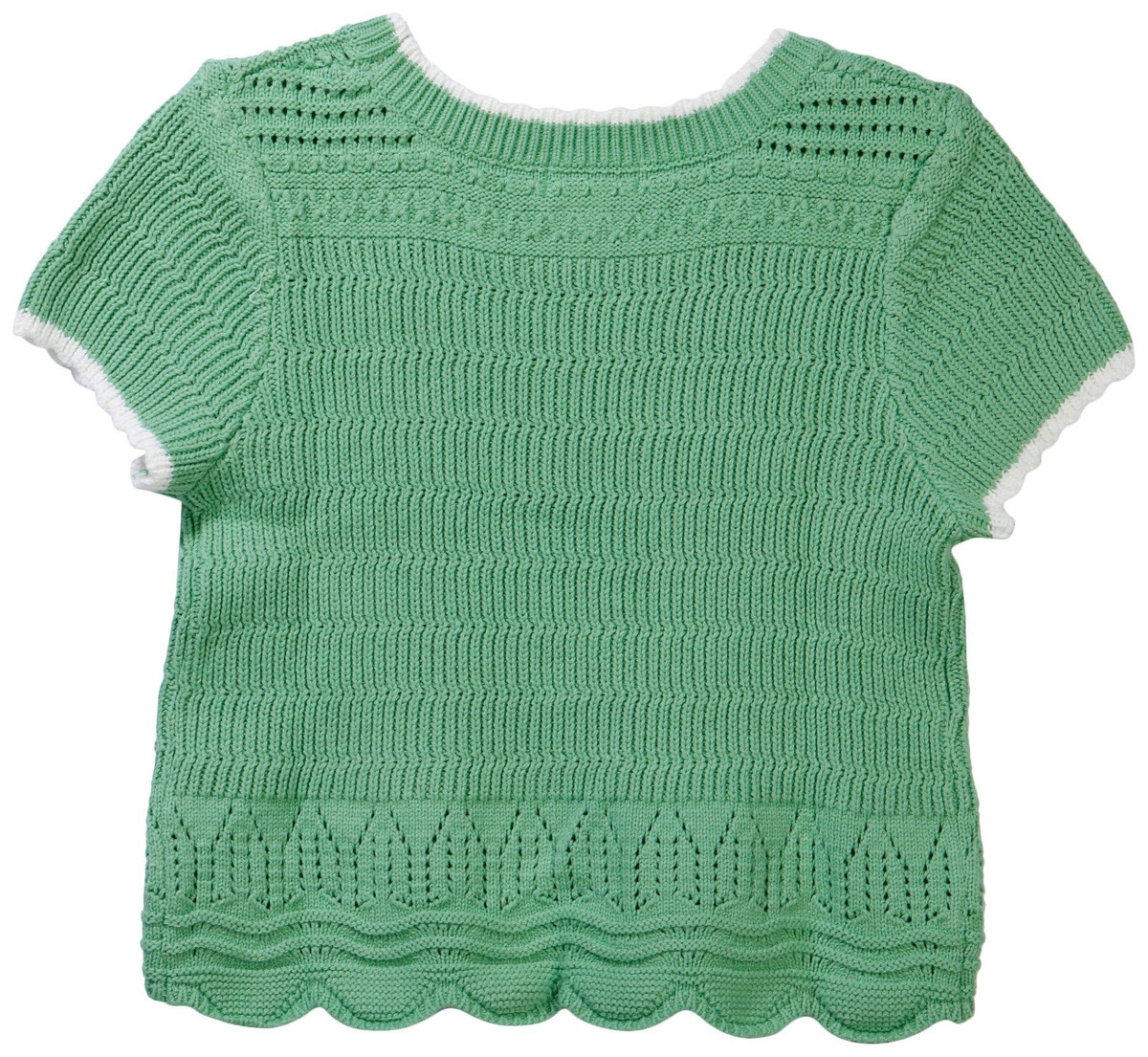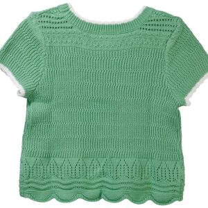 This big girls short sleeve crochet sweater top features a solid color with a classic crew neckline, short sleeves, and a scallop hem. Light and breezy, it adds a touch of charm to any outfit, perfect for layering or wearing on its own. Fabrication 60% cotton, 40% acrylic