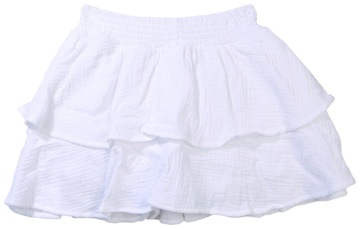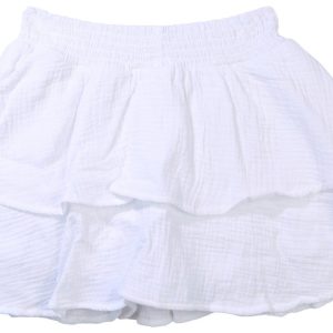 The Big Girls Solid Ruffle Skort blends playful style with everyday comfort. Made from a soft cotton and polyester mix, it features a solid color, an easy pull on elastic waistband, and a layered ruffle design that adds a fun and feminine touch.
