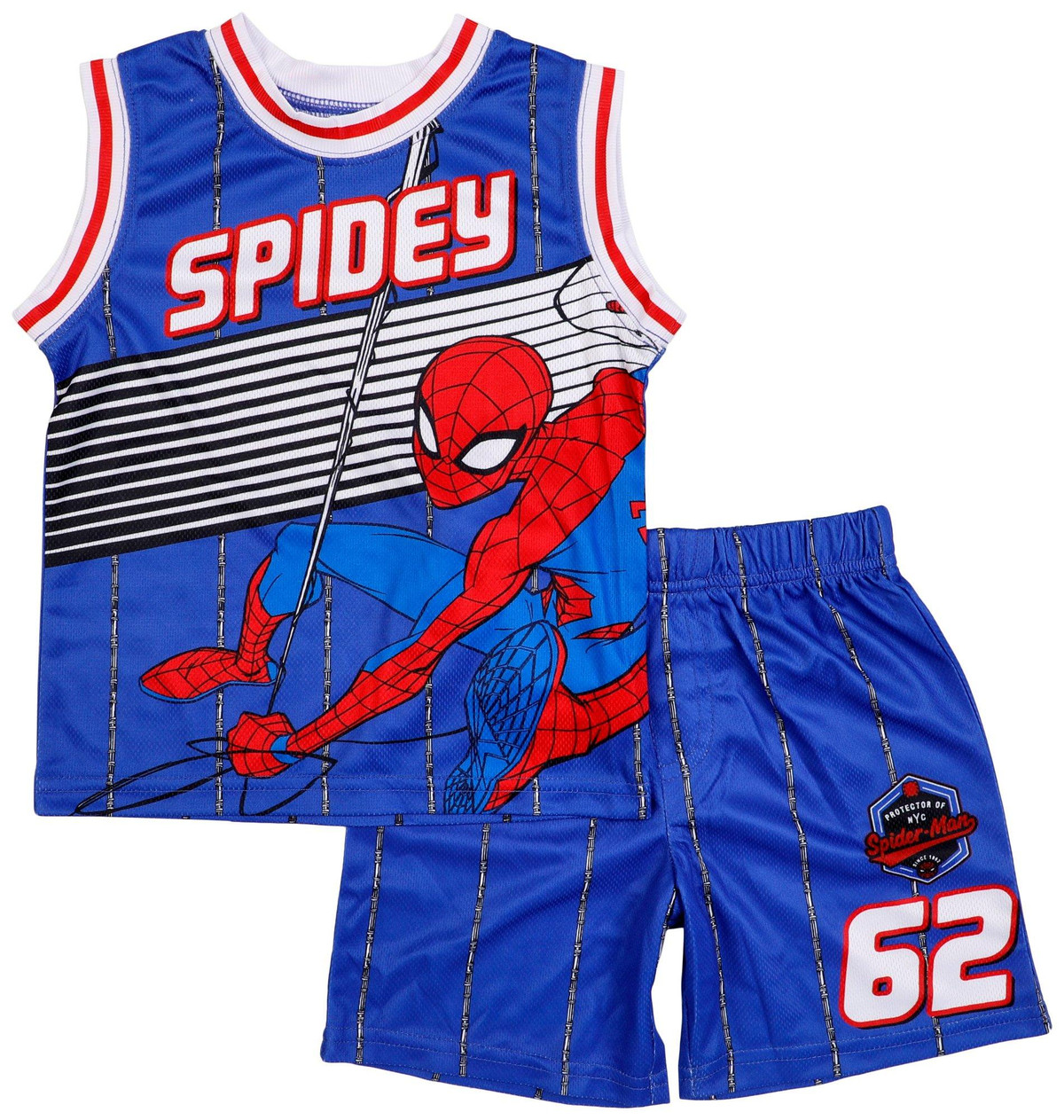 Your little superhero will love playtime with this Toddler Boys 2 Pc Basketball Jersey Short Set! Made from premium polyester, this set includes a comfy, sleeveless jersey and matching jersey shorts, with both featuring vibrant Spider-Man graphics. Perfect for a day of play or going out with the family, the lightweight fabric ensures a cozy and breathable fit. Let your child play with their favorite web-slinger by their side! Fabrication is 100% polyester.