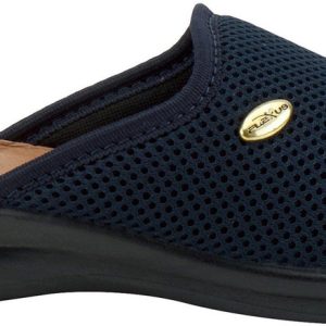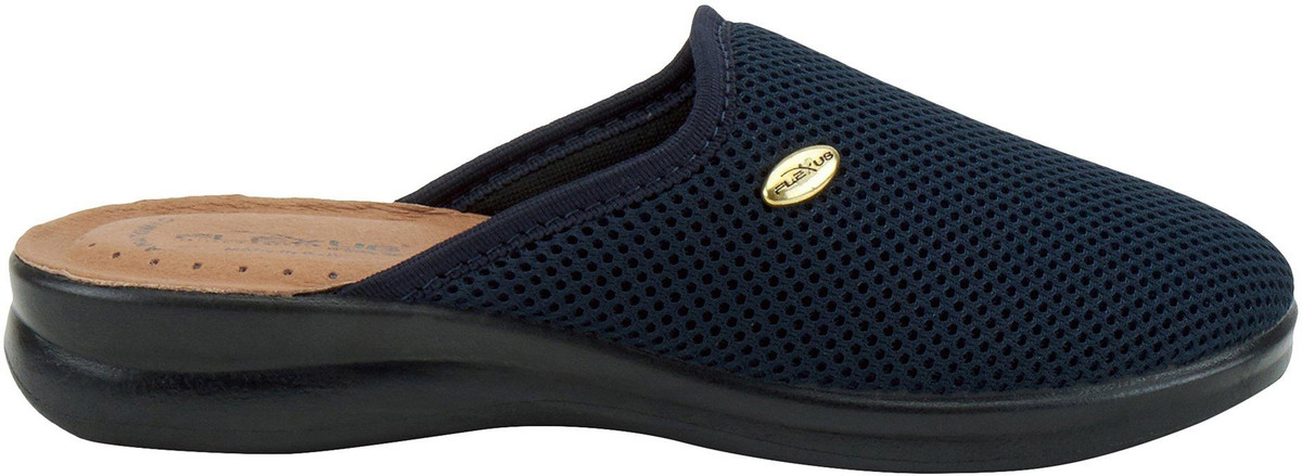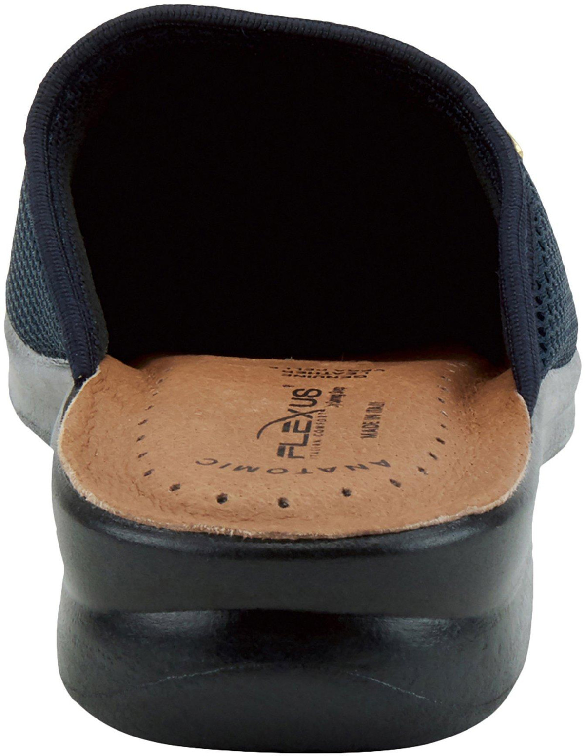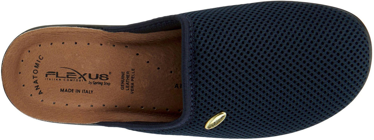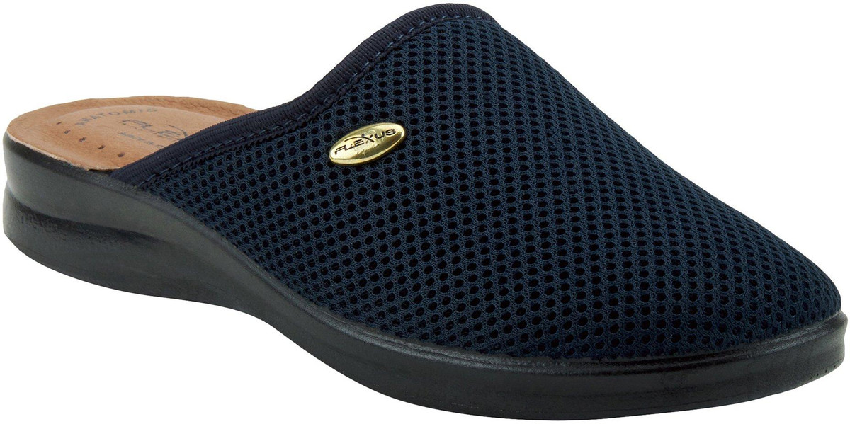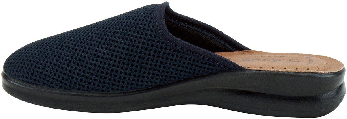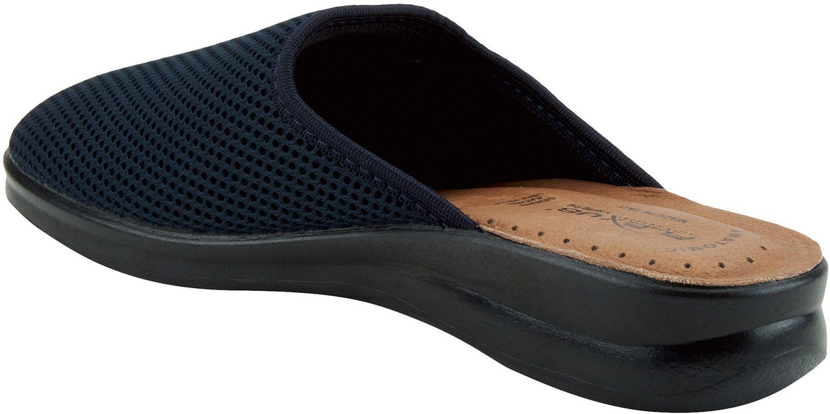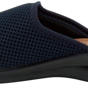 Ultra light weight slipper with mesh textile upper and metal trim design, featuring a full length leather padded footbed all on a flexible direct injection PU wedge sole.