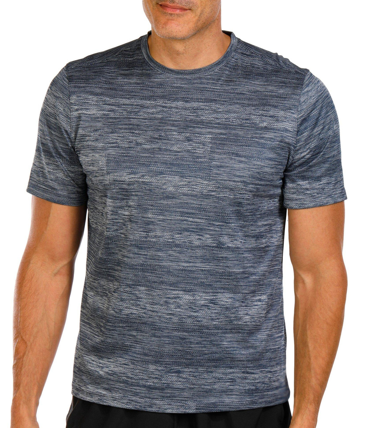 This short sleeve tee is made with active jacquard fabric that offers both breathability and texture. Designed for comfort and performance, its a versatile option for workouts or casual wear. Fabrication is 96% polyester, 4% elastane.