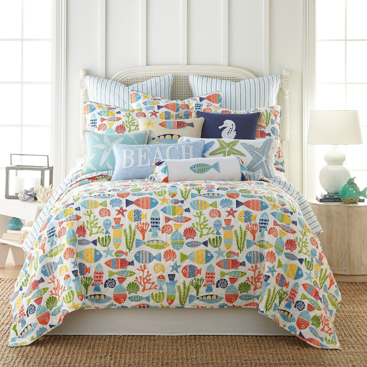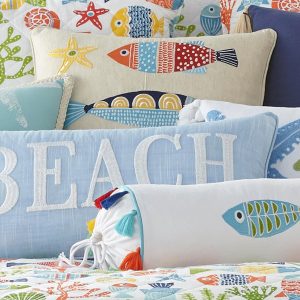 The ‘Multicolor Fish’ pillow adds a fun colorful accent to any bedroom or living space. This pillow is sized at Decorative Pillow (18 x 18in.) and features colorfully embroidered fish and starfish, on neutral ground. The pillow comes pre-filled with a soft, luxurious feather inner. The inner is removable, assuring easy care if the pillow cover needs cleaning.