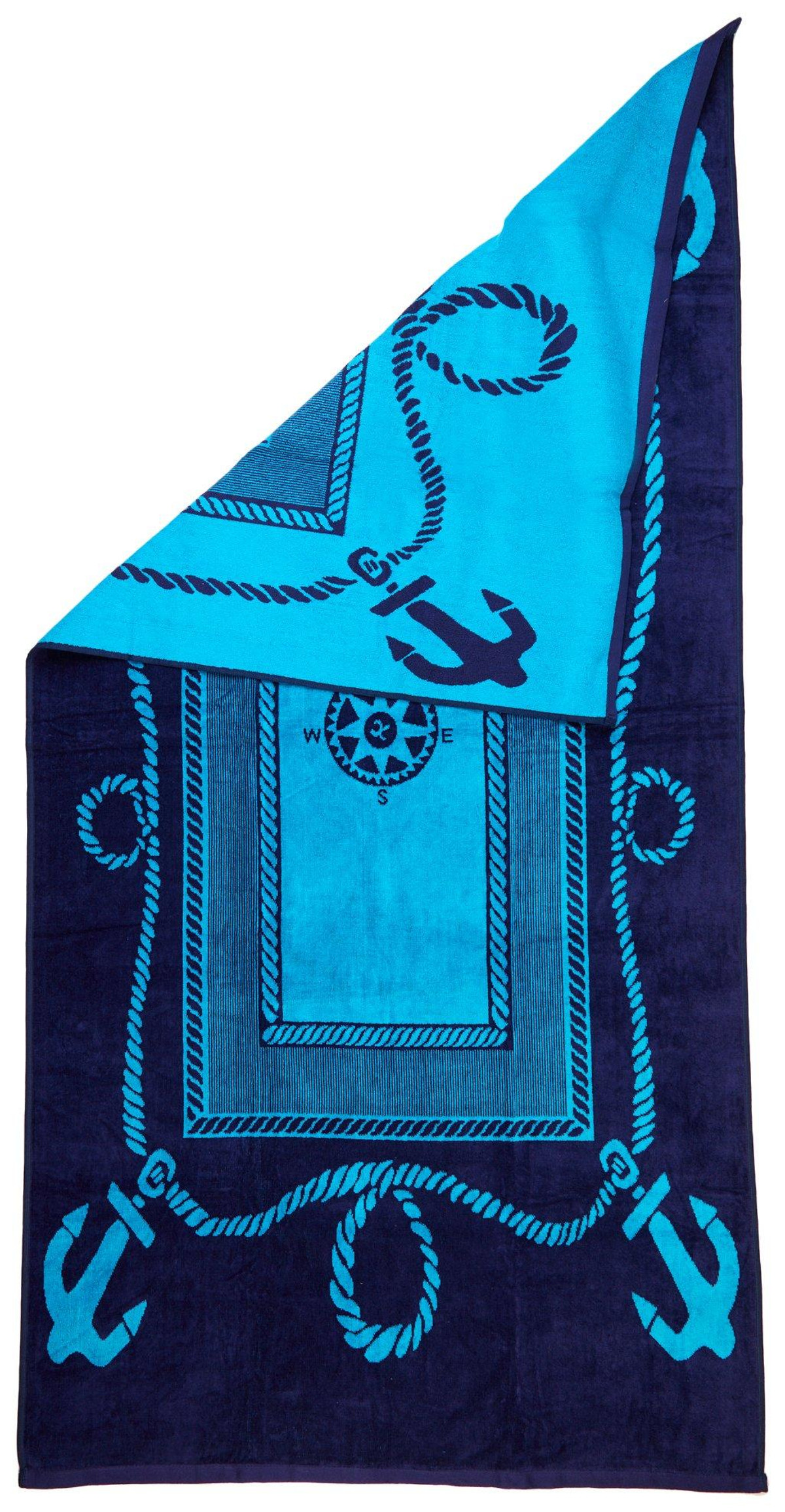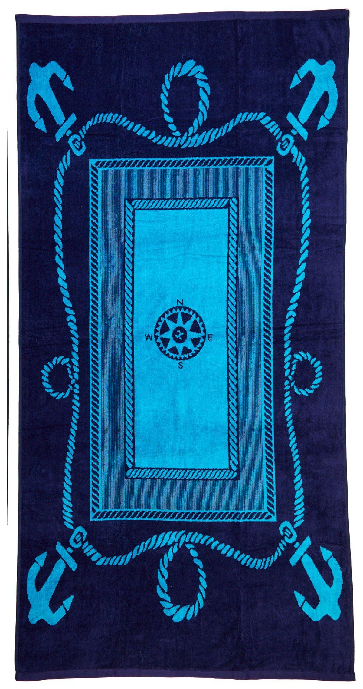Nautical vibes meet plush luxury with this jacquard velour beach towel, featuring a bold compass and rope design that brings a nautical vibe to your seaside or poolside lounging. Soft, absorbent, and richly textured, its a vibrant essential for sunny days and sandy escapes. Fabrication is 100% cotton. Measures 36 in x 70 in.