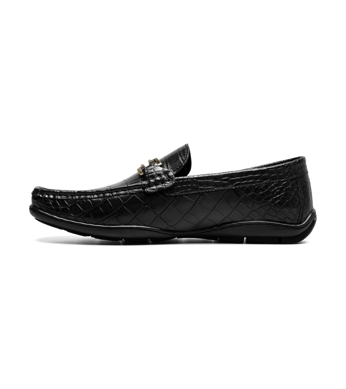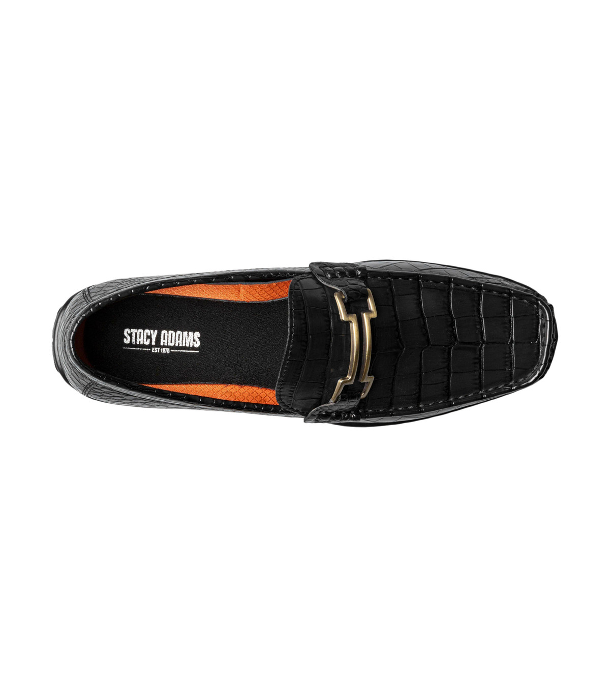 From its crocodile print upper to its eye-catching colors and the elaborate metal bit, the Stacy Adams Embrey Moc Toe Bit Slip On is the hardest working loafer of the season. An attention grabber from every angle, it features a cushioned footbed for all-day comfort, microfiber linings for comfortability, a fully cushioned insole with microfiber footbed cover for added comfort, and a durable man-made outsole.