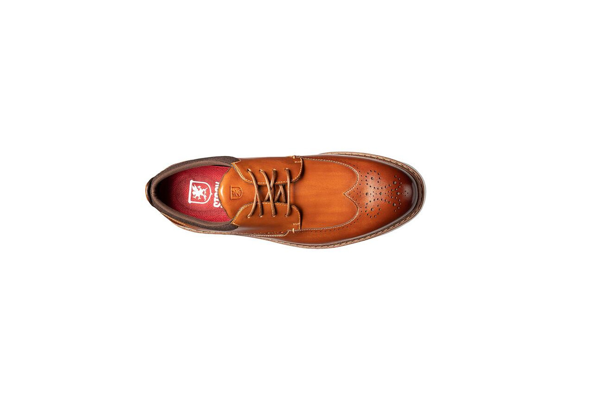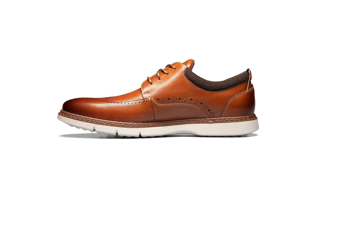 Featuring a felt collar, contrast stitching, an eye-catching welt, and a modern wedge sole, the Stacy Adams Synergy Wingtip Lace Up takes a classic and gives it a thoroughly modern overhaul. Stylish and lightweight, the Synergy also has all-day comfort thanks to The Red Zone footbed. It features a burnished smooth leather upper with felt collar, textile linings, and a durable man-made outsole. Leather sourced from a tannery with a gold or silver rating for environmental responsibility.