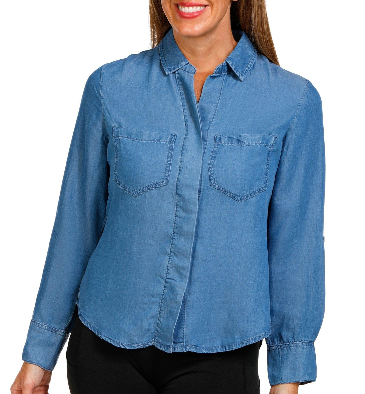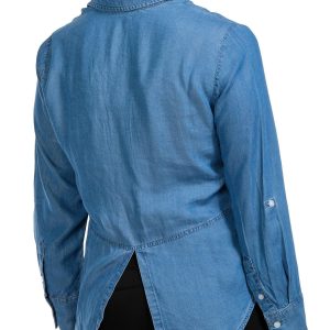This Women’s Long Sleeve Button Down Top blends classic style with everyday comfort. Featuring a button-down front, chest pockets, roll-tab sleeves, and a crisp collar, it’s a versatile piece perfect for layering or wearing solo. Fabrication 100% lyocell