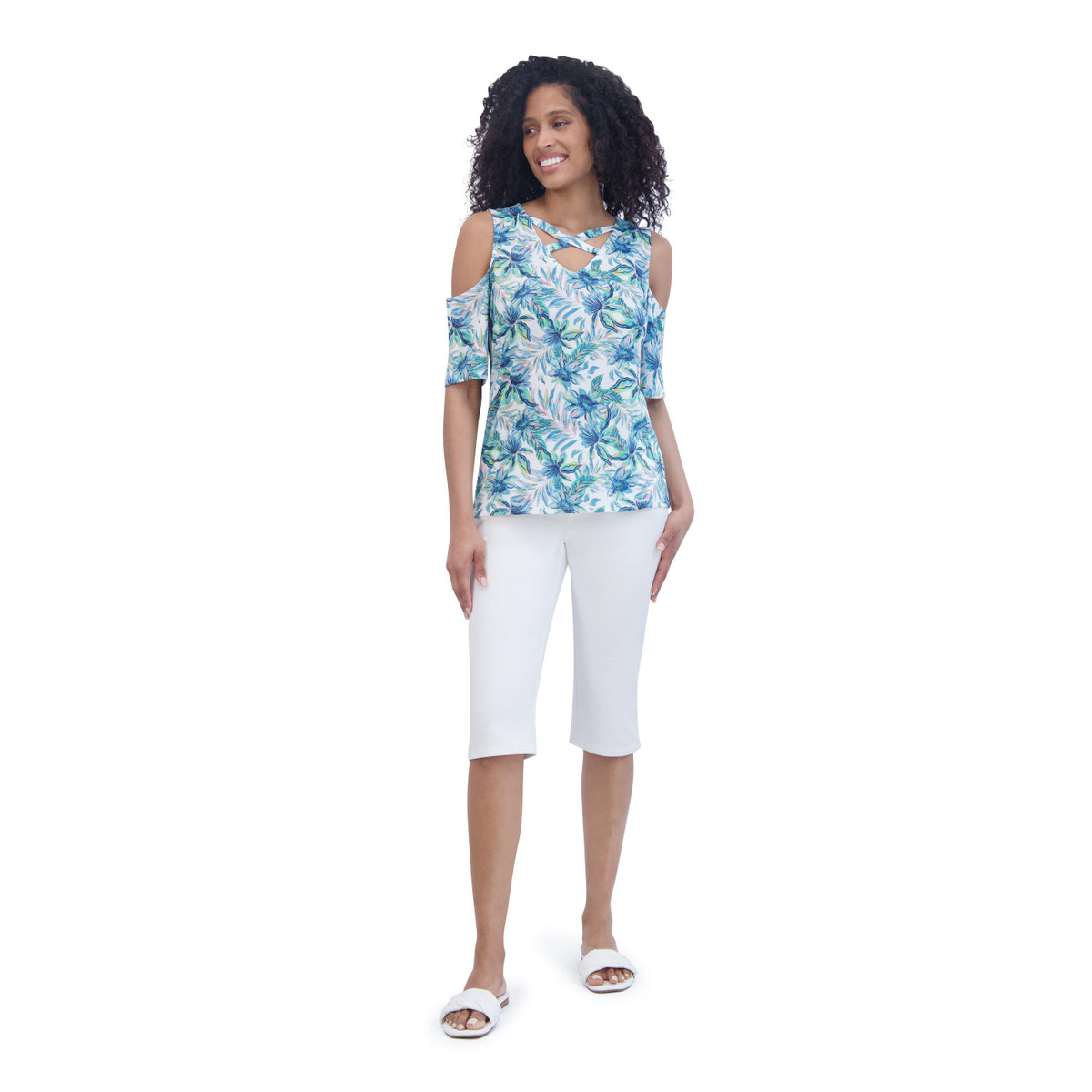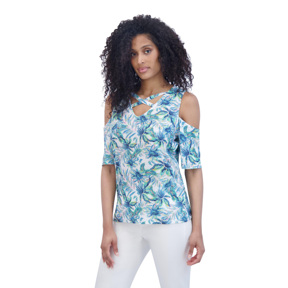 Stella Parker Criss Cross with Cold Shoulder Printed Top