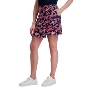 Elevate your Spring wardrobe with our chic skort, designed for the active woman. This pull-on skort features a stylish wrap front with button detail and vibrant, spring-inspired designs. The fitted styling and built-in briefs ensure comfort and confidence, while the side pockets add practicality. Perfect for a fresh, active look, this skort seamlessly blends fashion and function for any occasion. Fabrication 92% polyester, 8% spandex.