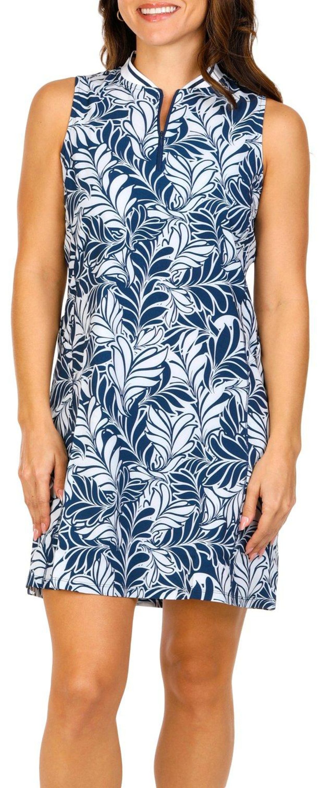 Embrace the tropicalDesigned for active days, this 1/4 zip dress features a stylish pattern that is perfect for warm weather. The two side slip pockets add practicality, while the lightweight fabric ensures comfort. Whether you are hitting the golf course or enjoying a leisurely stroll, this dress combines style and functionality effortlessly. Fabrication 88% polyester, 12% spandex.