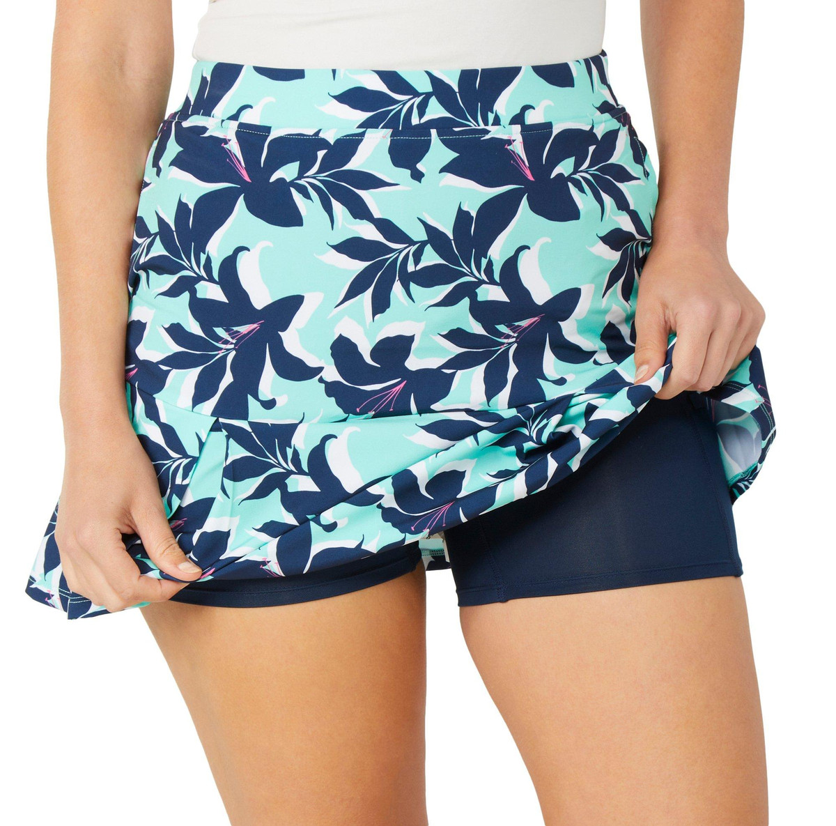 Playful yet polished, this Woven Skort features a lively print and pleated hem for a flirty finish. Designed with sun protection and moisture wicking fabric, it keeps you cool and confident all day. Side slip pockets add function to the fashion, making it your perfect pick for active days with style. Fabrication 92% polyester, 8% spandex.