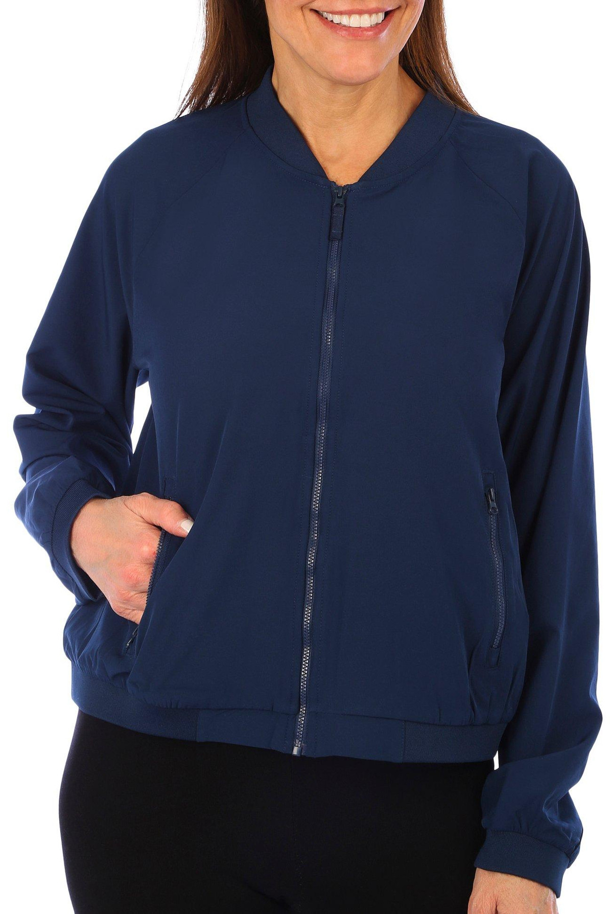 Stella Parker Womens Solid Zipped Bomber Jacket