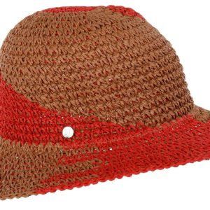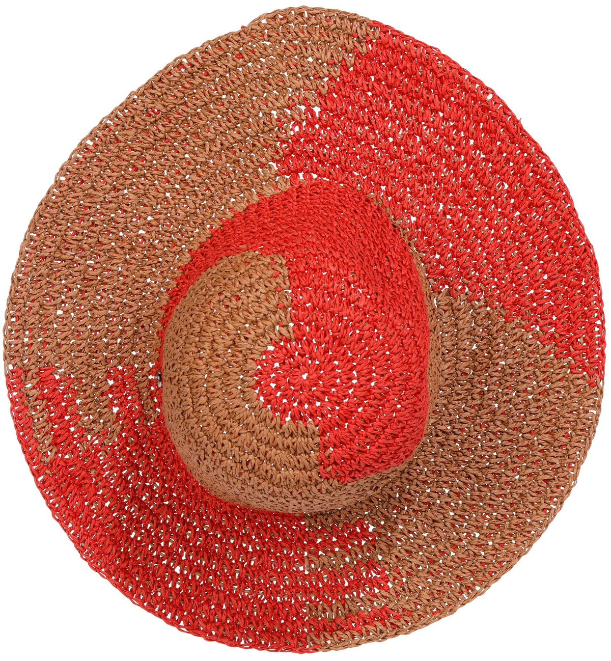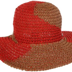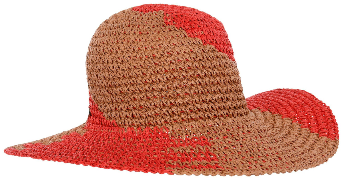 This Steve Madden beach hat features a stylish blend of brown and red tones, perfect for sunny days. Designed to provide shade and flair, it adds a bold accent to your beachwear while keeping you cool and comfortable.