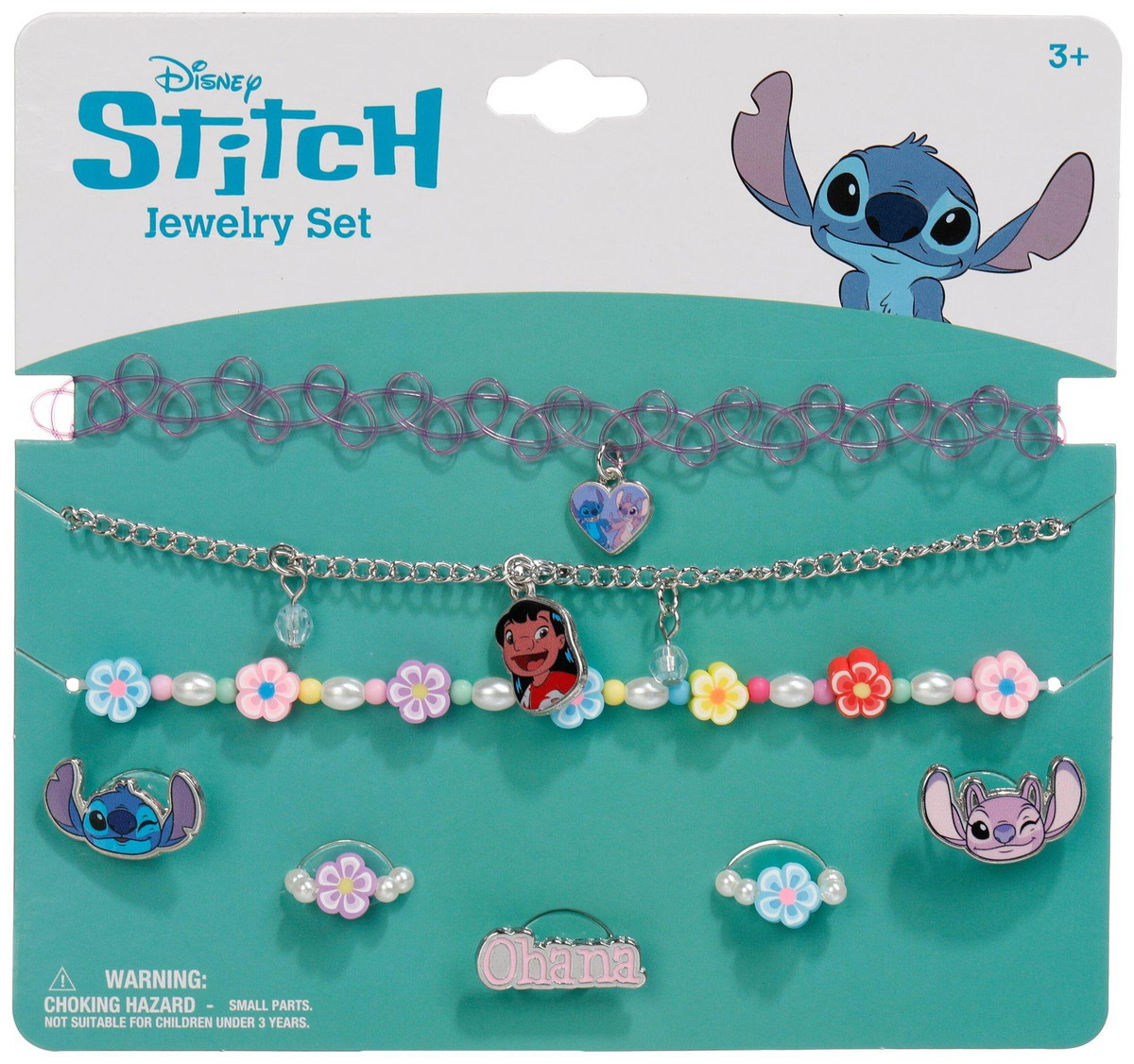 Delight your little one with this 8-piece Girls Jewelry Set inspired by Lilo and Stitch! Featuring 3 colorful necklaces and 5 playful rings, each piece showcases fun, tropical designs perfect for fans of the beloved duo. Ideal for dress-up or everyday sparkle!