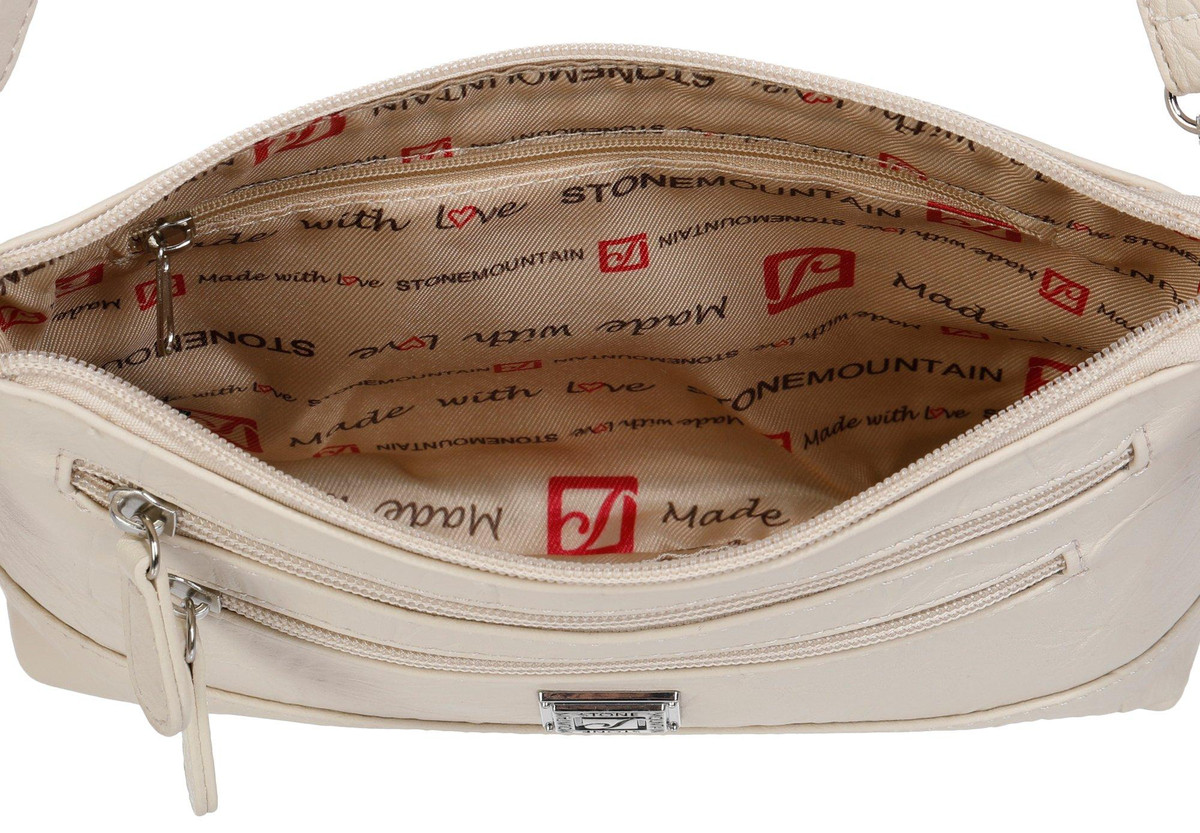 This Stone Mountain Crossbody offers four-in-one versatilitywear it as a crossbody, short shoulder bag, wristlet, or clutch to suit any occasion. Crafted from durable bonded leather, it features three exterior zipper pockets for streamlined organization and quick access to your essentials. The adjustable strap lets you customize the fit, making this sleek, multi-functional bag a smart and stylish companion for wherever the day takes you.