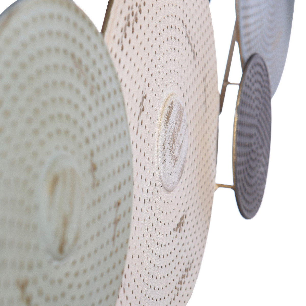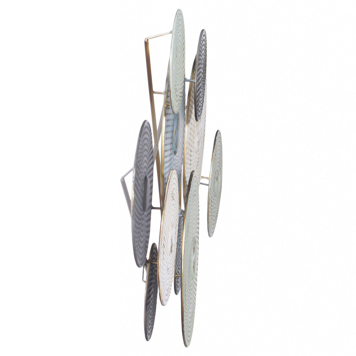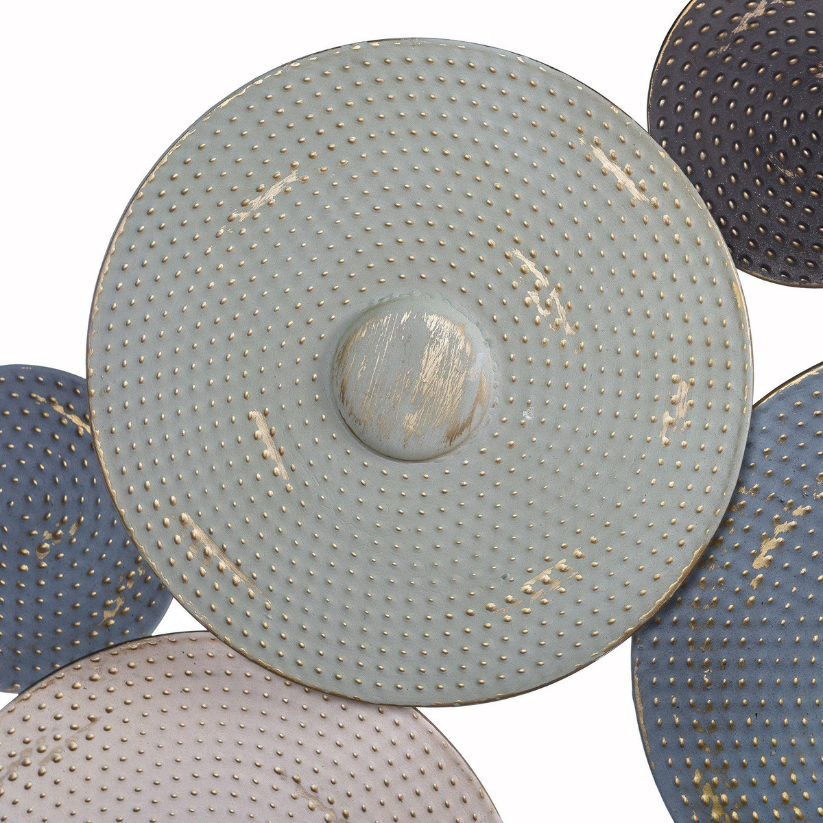 An alternative take on art – this layered metal disc wall decor features a muted blue and cream color palette. Each disc is seamlessly connected to the other. Display this wall art above the couch, above the console table, or in the dining room for an attractive touch. This piece exemplifies superior product design and great styling.