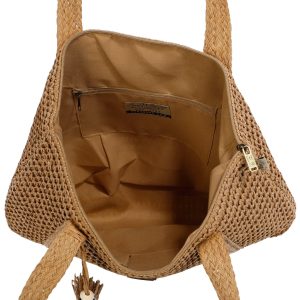 Breeze through summer with this chic straw beach tote, designed for both style and function. Featuring comfy shoulder straps, a secure zippered top, and a spacious interior, it keeps your essentials organized with a zippered pocket and two open pockets. Whether you’re seaside or city-bound, this tote is your perfect sunny-day companion. Measures approximately 17 in x 16 in x 5 in.