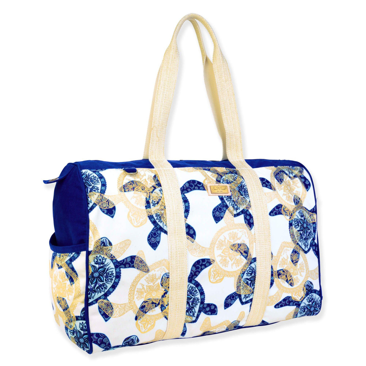 This Sun N’ Sand Turtles beach tote features a print pattern that is perfect for beach days, lounging by the pool or just putting around town.