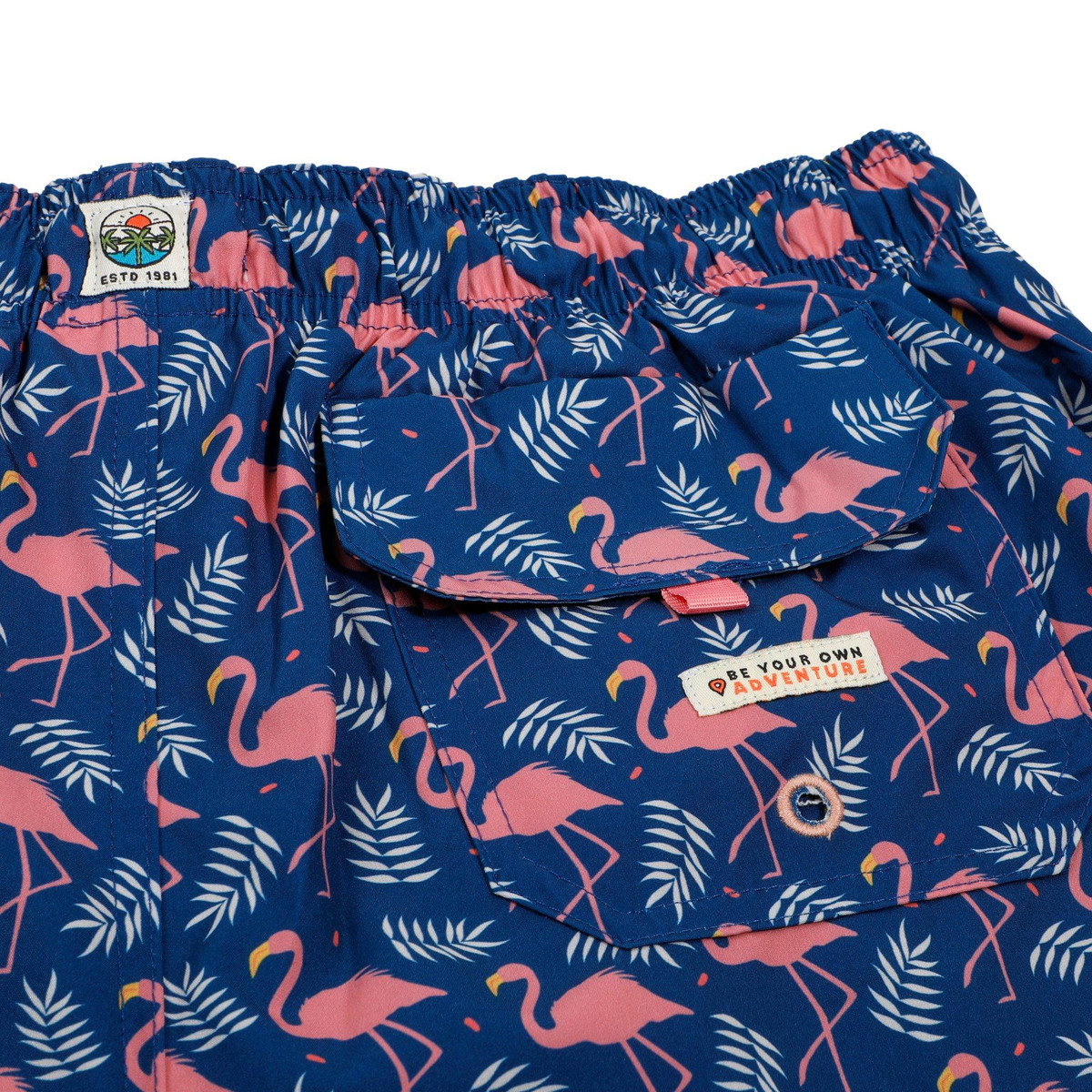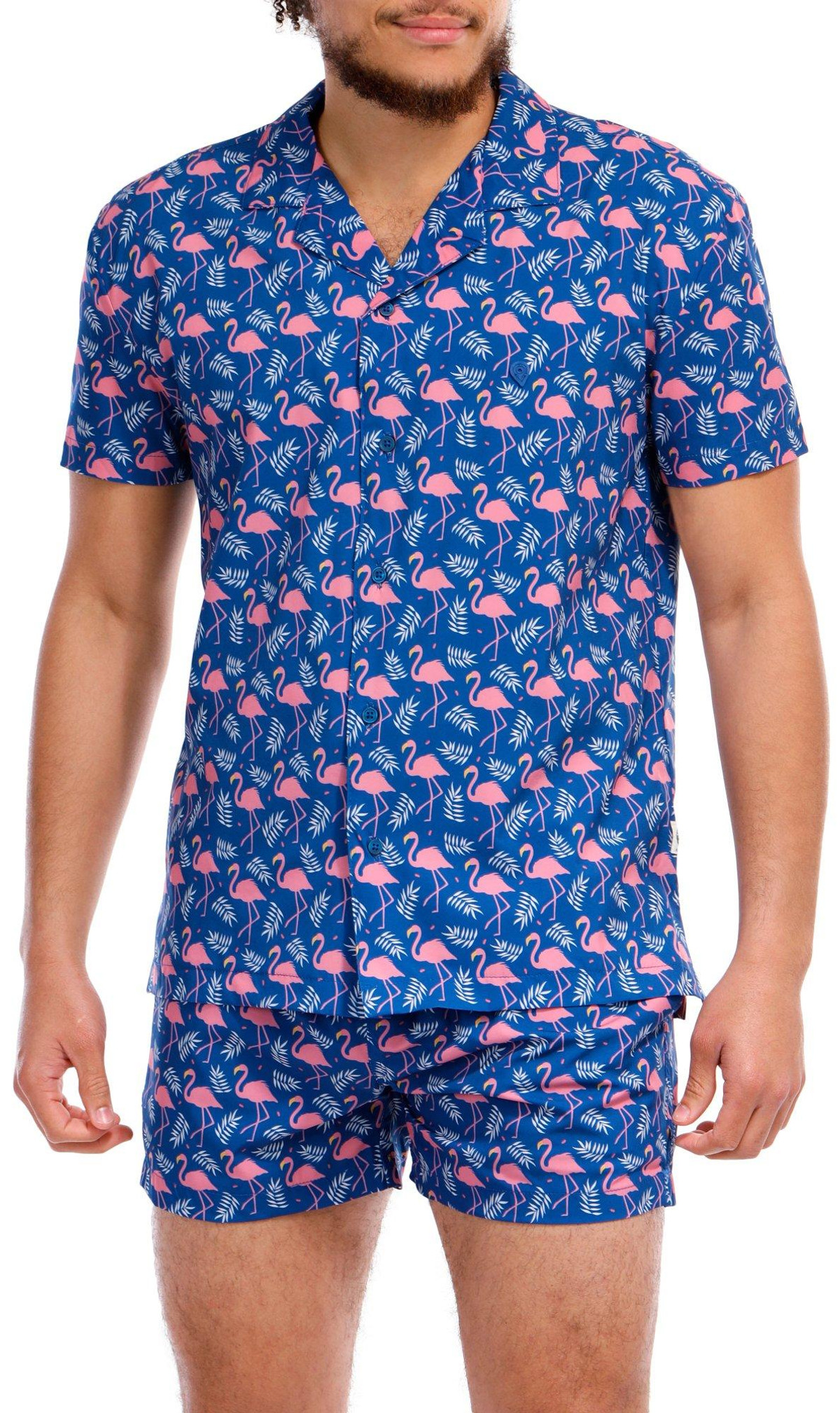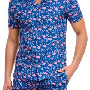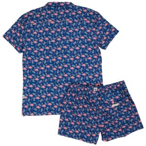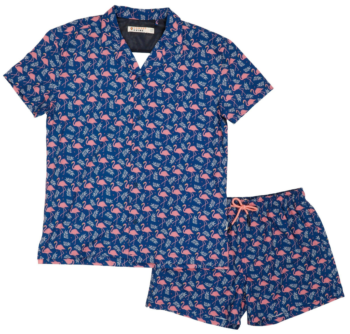 Make a statement this season with the Sunset & Vine Navy Flamingo Print Volley Set. Designed for effortless style and comfort, this matching button down shirt and short combo is your ultimate go-to for beach days, poolside lounging, and tropical getaways. A bold yet classic navy backdrop with lively pink flamingos adds a fun, coastal vibe to your swimwear collection.