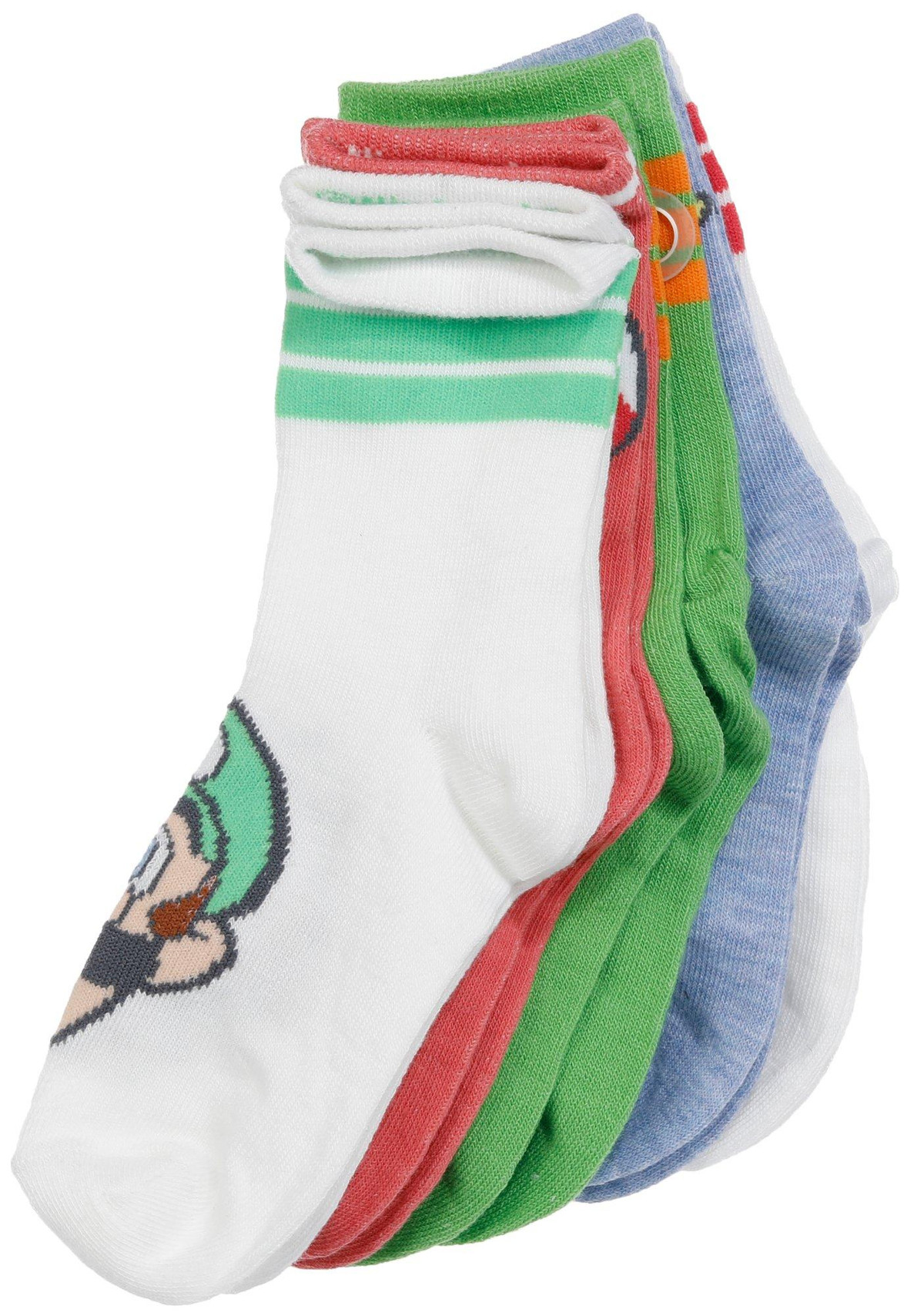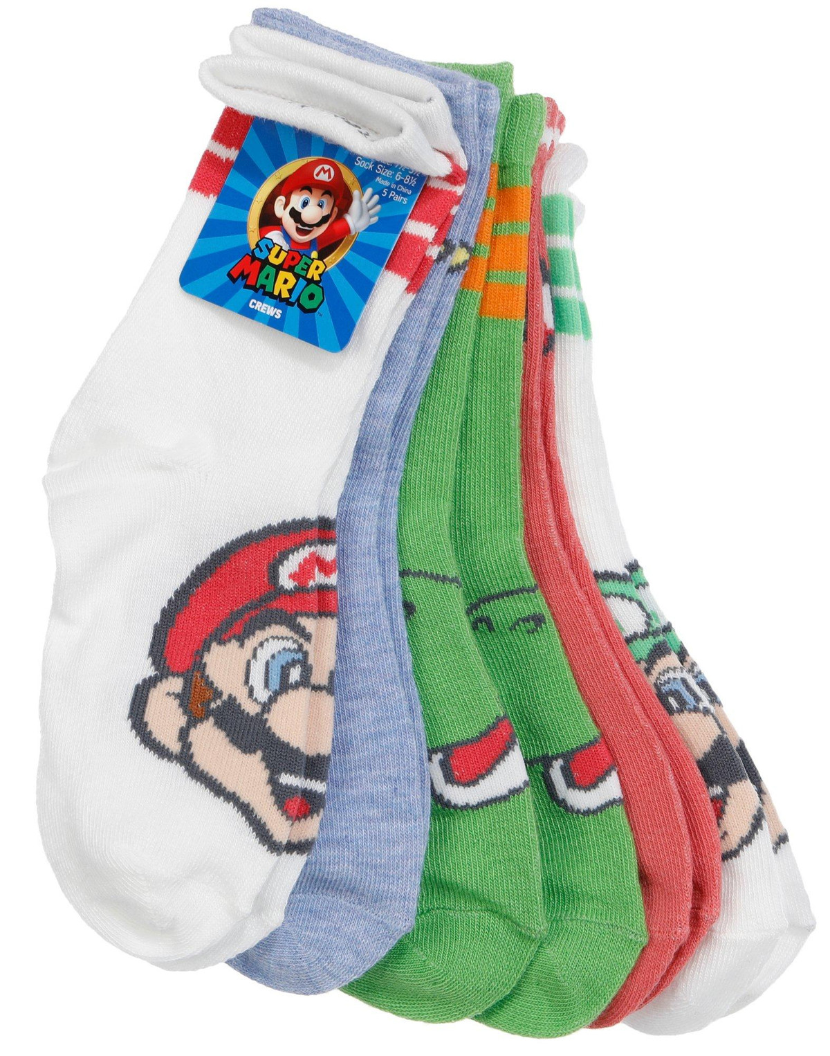 This 5-pack of boys’ Super Mario crew socks features vibrant character designs inspired by the iconic video game. Sized to fit shoe sizes 7.53.5 and sock sizes 68.5, each pair is made from a soft polyester and spandex blend for breathable, all-day comfort. Perfect for school, play, or lounging, these socks bring fun and adventure to every step.