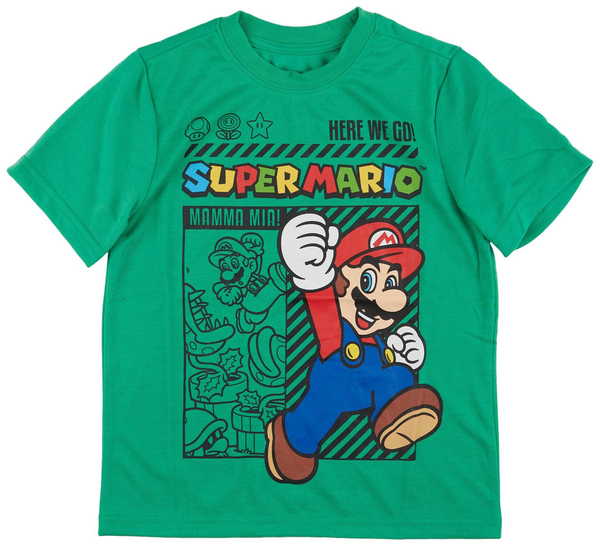 Introducing the Little Boys Super Mario Brothers Graphic T-Shirt, perfect for young gamers and fans of the iconic franchise. Made from 100% polyester, this t-shirt features a crew neckline and short sleeves for a comfortable fit. Ideal for everyday wear and adventures in the Mushroom Kingdom!