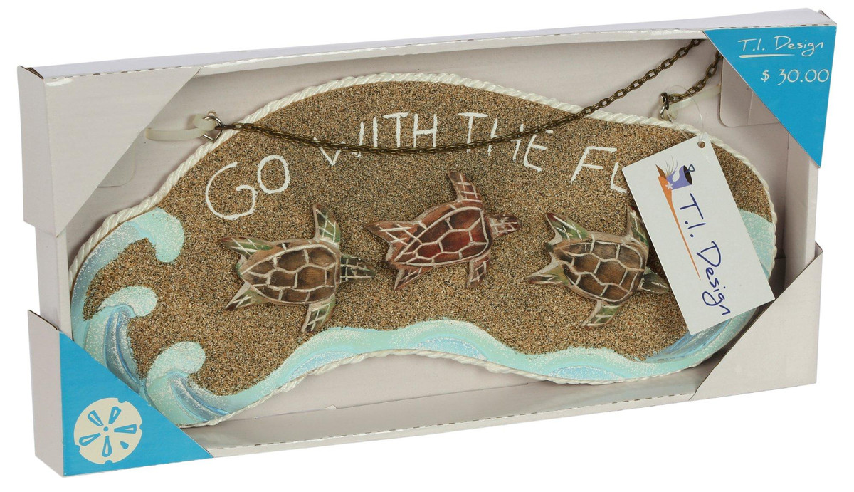 Bring a touch of coastal charm to your home with our 14×6 Go With The Flow Hanging Wall Accent. Featuring a beach shore inspired design, this wall accent adds a serene and relaxing vibe to any space. Perfect for living rooms, bedrooms, or bathrooms, it effortlessly enhances your decor with its soothing colors and artistic flair.