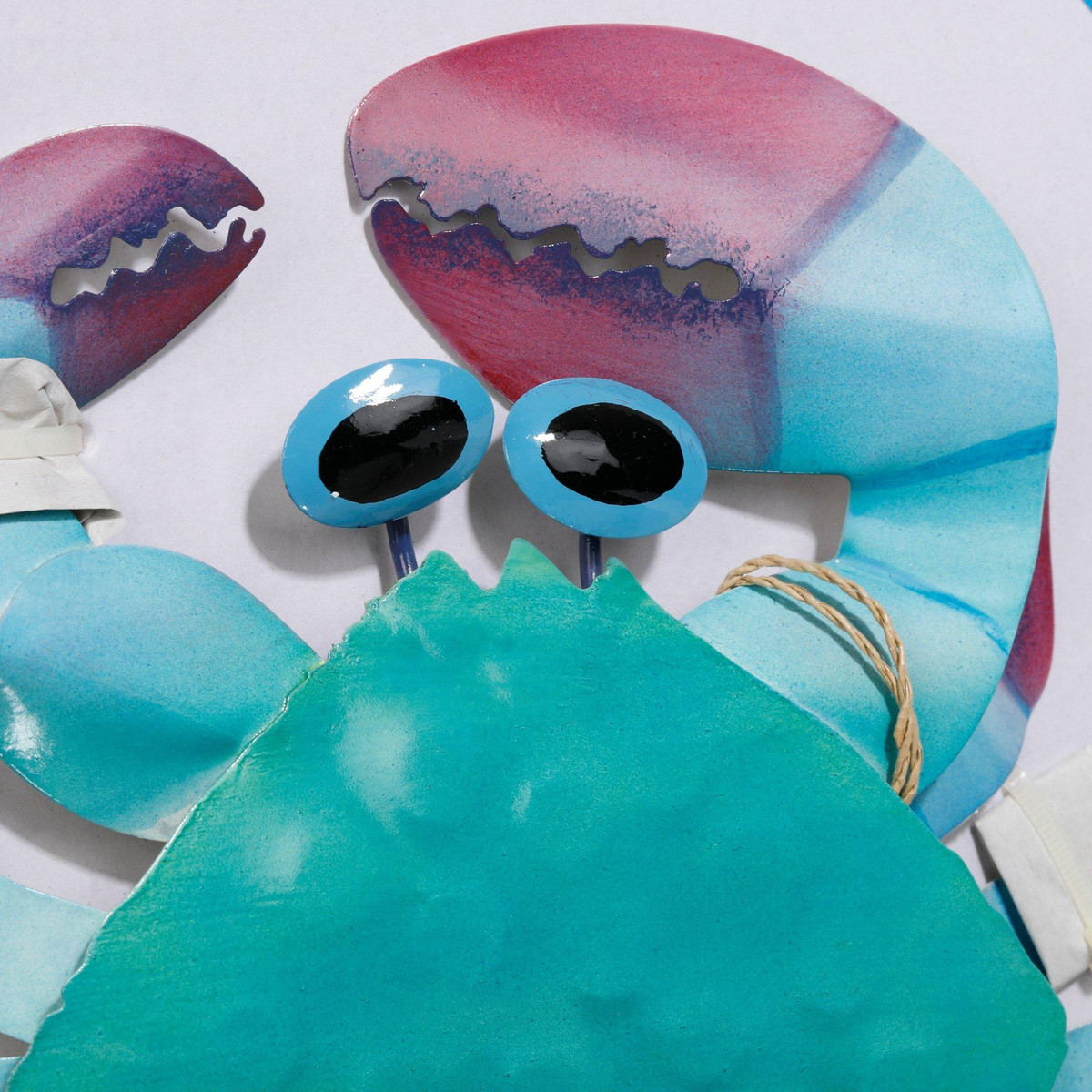Introducing our Blue Crab Metal Wall Decor, a vibrant and eye-catching piece for your home. Measuring 11 inches by 10 inches, this decor features a detailed crab design in a striking blue and green hue. Perfect for adding a coastal touch to any room, it’s made from durable metal to ensure long-lasting beauty. Ideal for both indoor and outdoor spaces, this charming wall decor brings a splash of color and seaside charm to your decor.