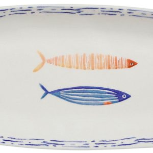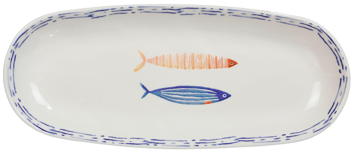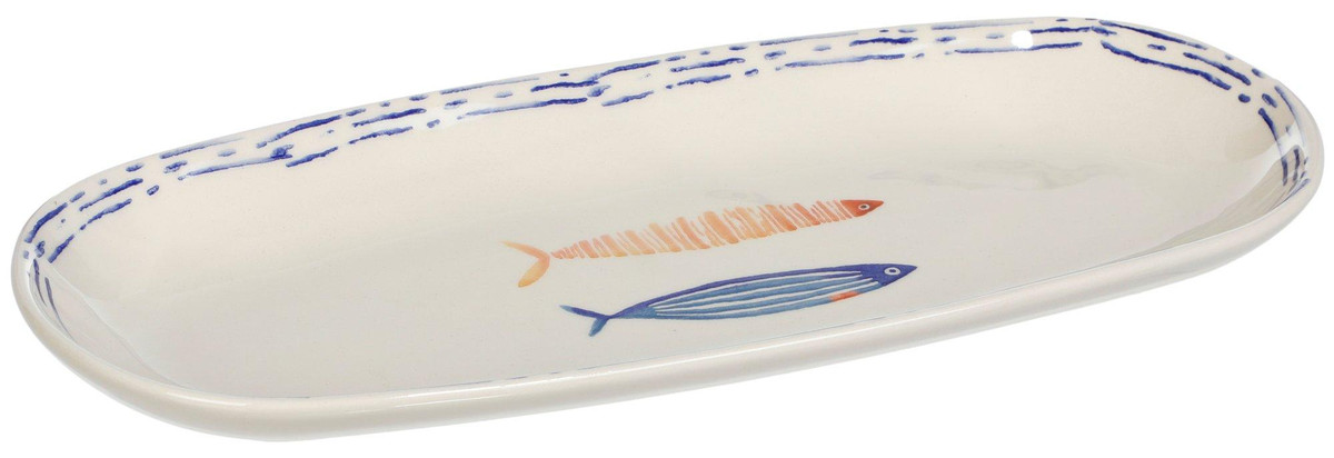 Enhance your dining experience with this 14 in Sardinia Oval Serving Platter. This elegant platter is perfect for serving a variety of dishes. Its rustic design adds a touch of style to any table setting. Made from high-quality materials, this platter is both durable and stylish, making it ideal for everyday use or special occasions. Microwave and dishwasher safe. Measures approximately 14 in x 6 in.