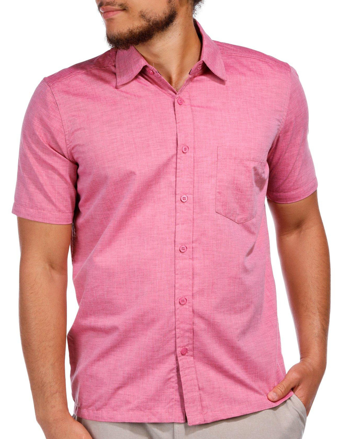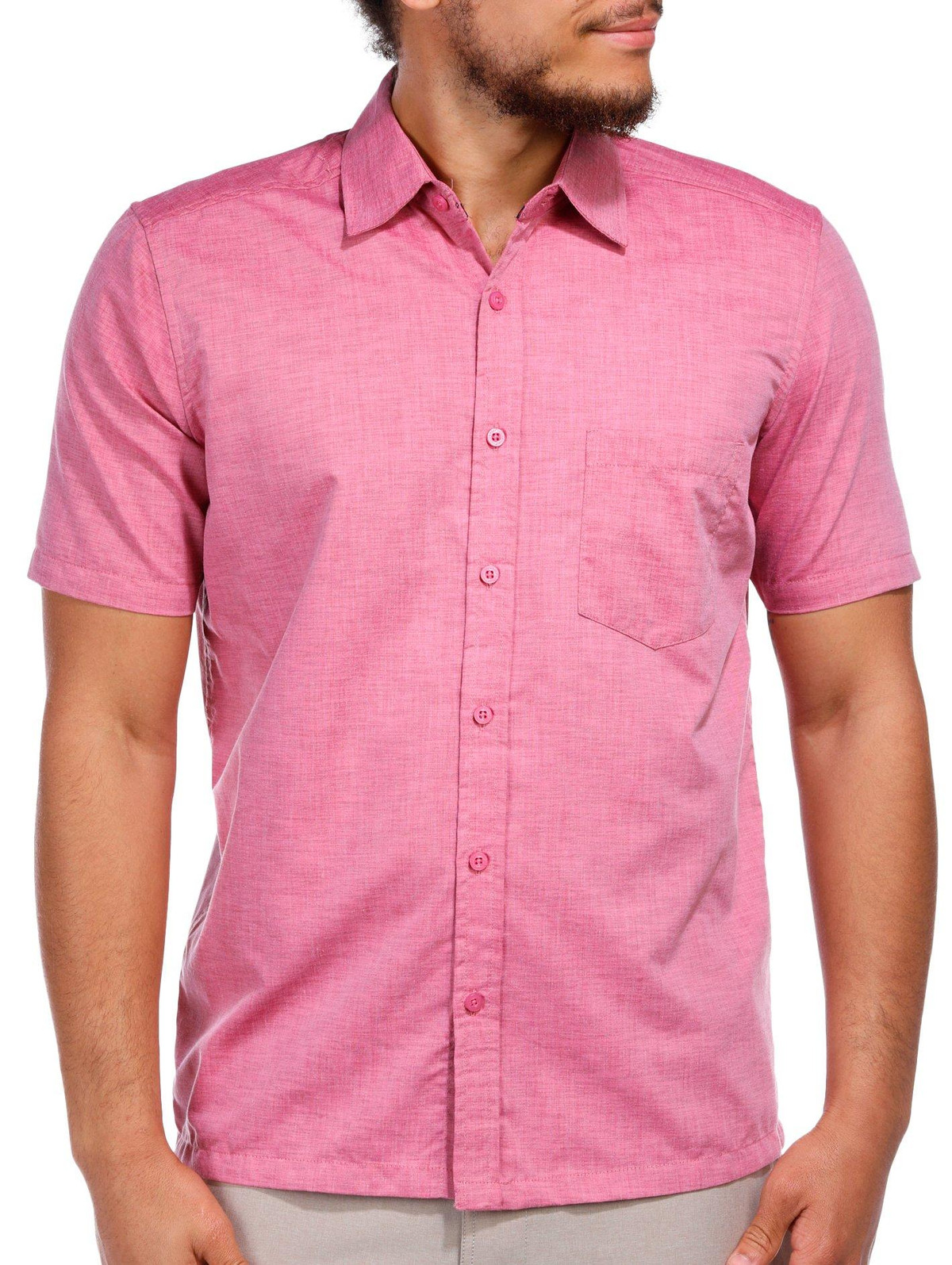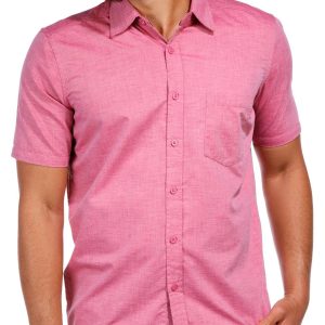 Elevate your casual wardrobe with this short sleeve woven shirt, featuring jacquard textured fabric and a button front. The chest pocket adds a practical touch, making it perfect for everyday wear. Crafted from high-quality materials, this shirt offers both comfort and a unique look. Fabrication is 55% cotton, 45% polyester.