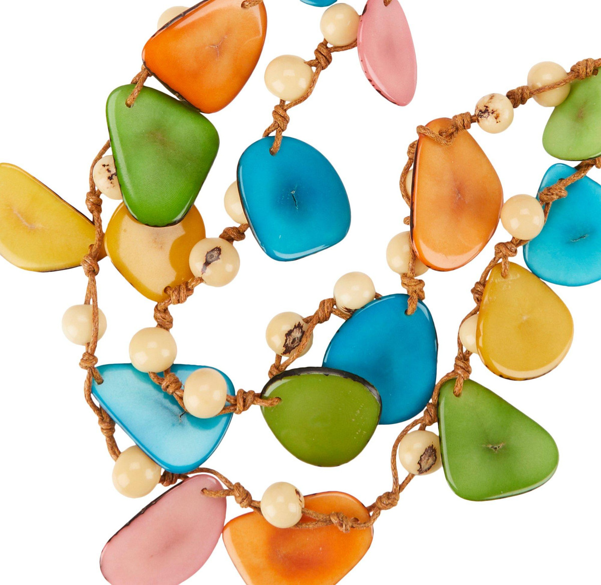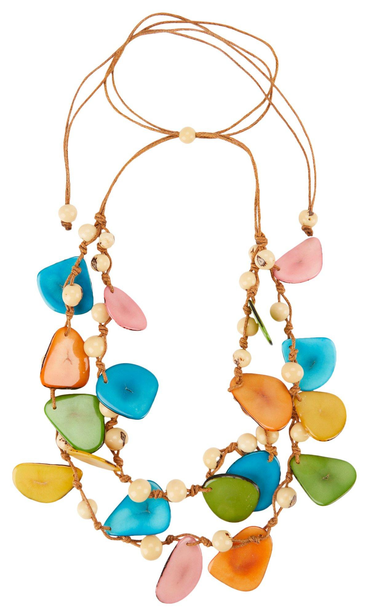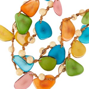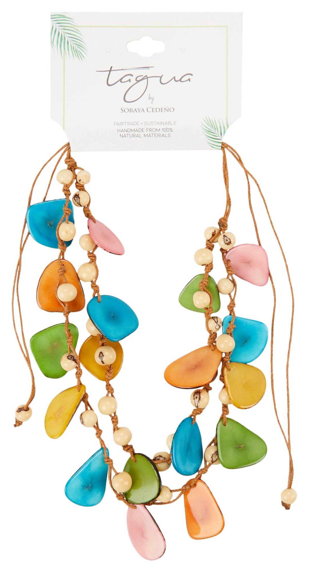 The Tagua Marcela 2 Row Teardrop Adjustable Necklace features a chic, two-row design made from eco-friendly Tagua seeds. With its adjustable length, this elegant necklace adds a sophisticated, sustainable touch to any ensemble, perfect for both casual and formal occasions.