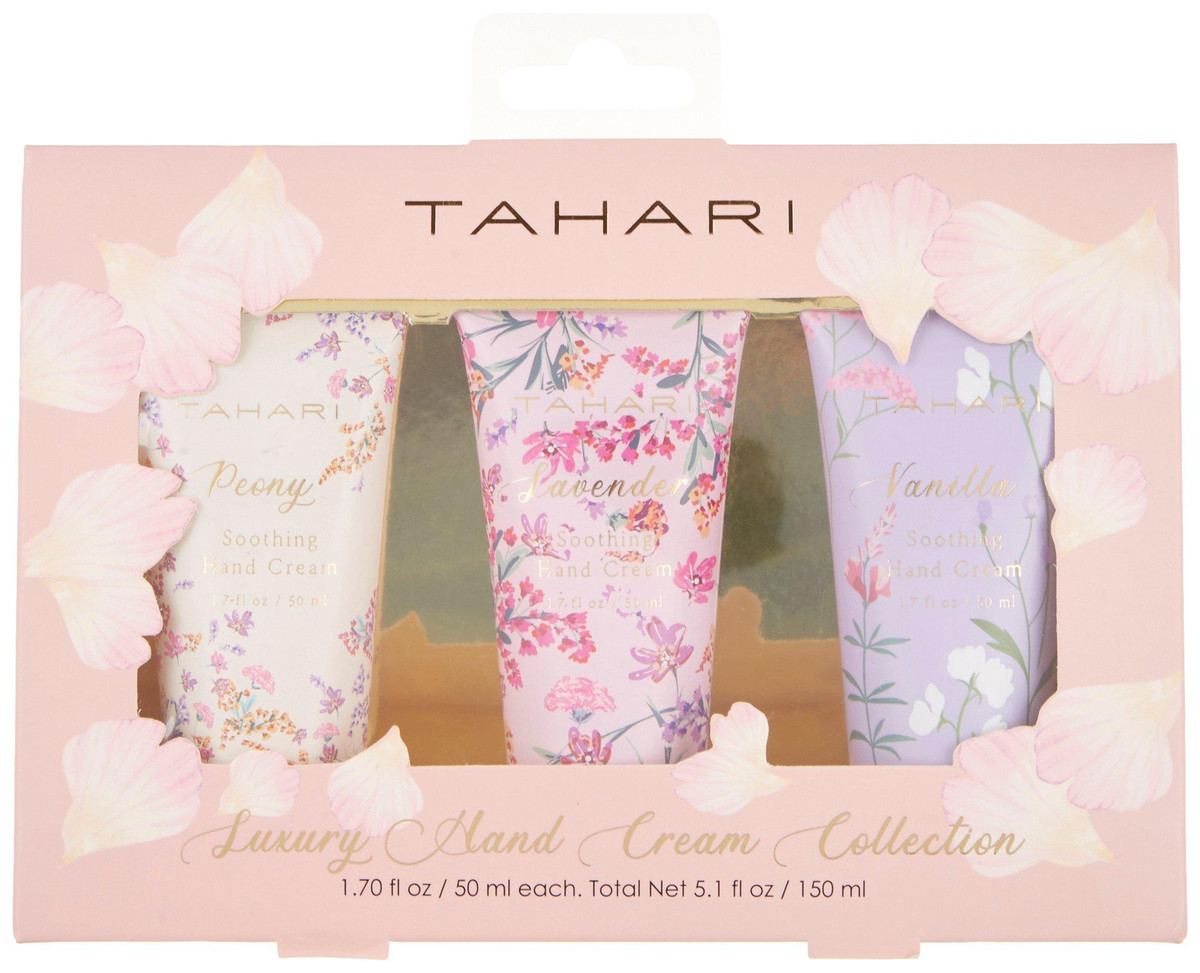 This 3-Piece Scented Hand Cream features scented hand cream for soothing skin relief. Vanilla, Peony, and Lavender fragrances. Decorative presentation gift box included. Best used within 12 months of opening. Contains 3 x 1.7 fl.oz., total 5.1 fl.oz.