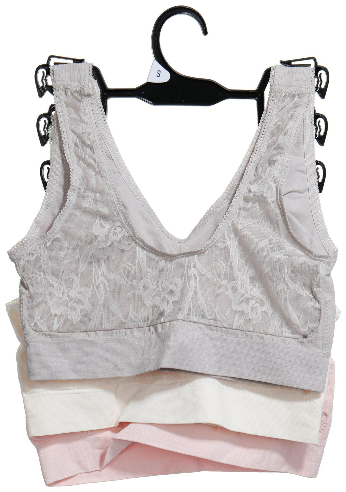 Indulge in ultimate comfort with this 3-Pack of Seamless Bras. Crafted from ribbed fabric, these bras offer a unique texture and a snug fit. The delicate lace trim adds a touch of elegance, while the removable pads allow for customizable support. Perfect for any occasion, these bras provide a seamless look under clothing, ensuring you feel confident and comfortable all day long. Fabrication is 96% nylon, 4% spandex.