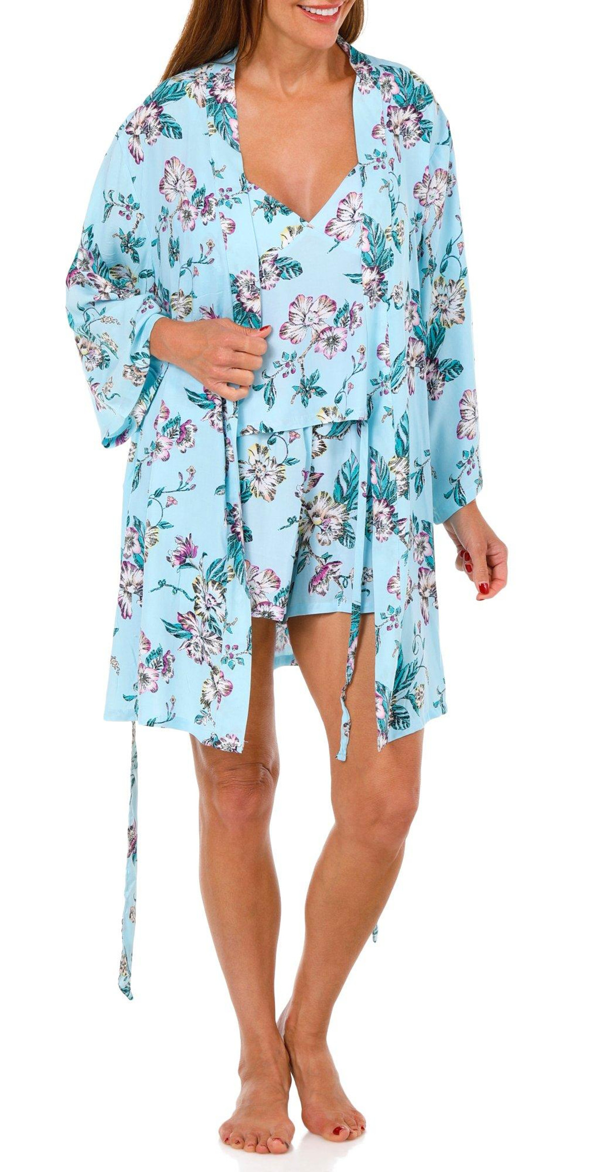 Wrap yourself in floral elegance with our Women’s 3 Pc Sleepwear Set. This matching set includes a soft cami, comfy shorts, and a lightweight robe, all adorned with a beautiful floral print. Fabrication 100% rayon