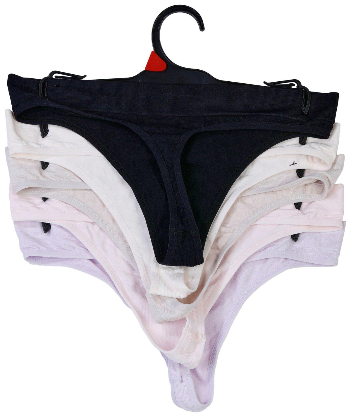 The Tahari Womens 5 Pack Seamless Thong Panties offer soft stretchy fabric and a smooth fit with no lines under clothing. Designed for all day comfort these thongs feature a seamless construction and stylish colors to elevate your everyday essentials.