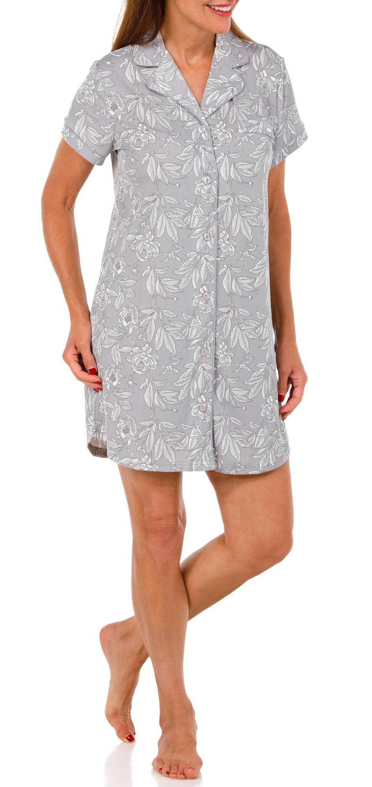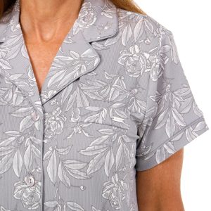 Drift into comfort with our Women’s Short Sleeve Floral Button Down Sleep Dress. Featuring a soft ribbed exterior, faux chest pocket, and a classic collared neckline, this floral sleep dress blends cozy charm with timeless style. Fabrication 95% polyester, 5% spandex
