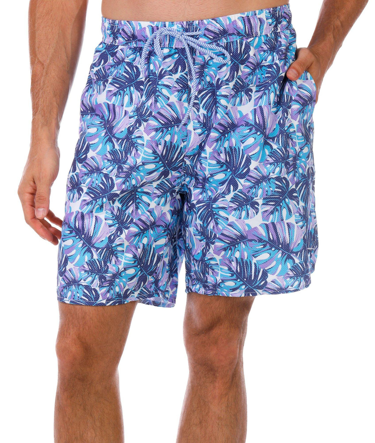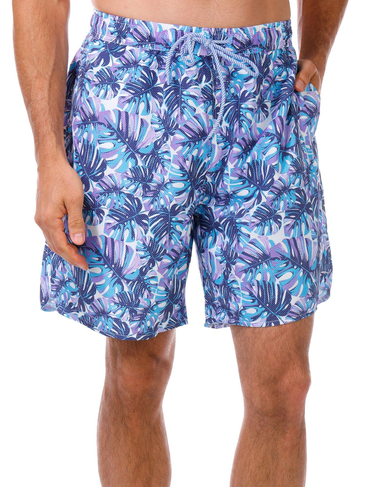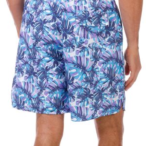 The Men’s Tropical Leaves Volley Shorts feature a vibrant tropical leaves print with a drawstring waistband for a secure fit. Designed with side seam pockets, quick dry and moisture wicking fabric, and built-in SPF 30, they offer comfort and protection for beach days or active wear.
