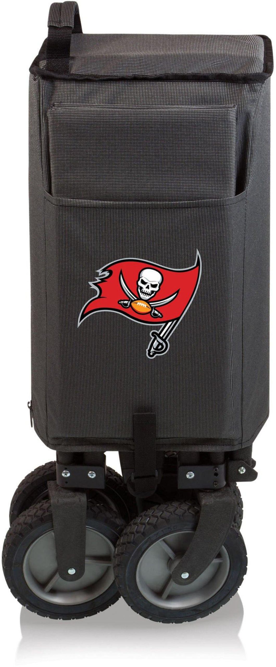 The Adventure Wagon is a utility wagon with heavy-duty wheels & telescopic handle that folds into a compact size and includes a fitted cover. Made of 600D polyester with a powder coated steel frame. Measures: 35.6” x 18.9” x 21.9” open, 10” x 11” x 30” closed.