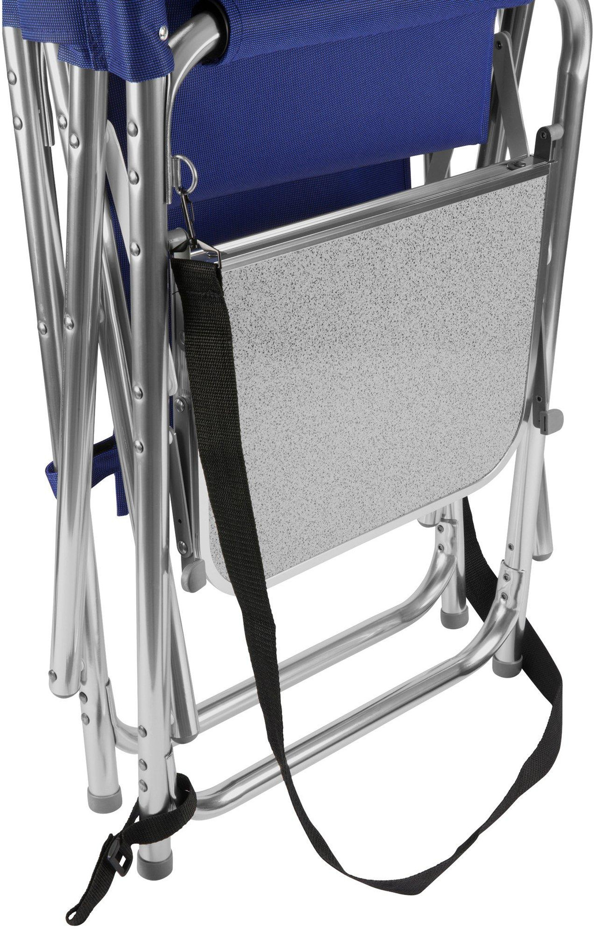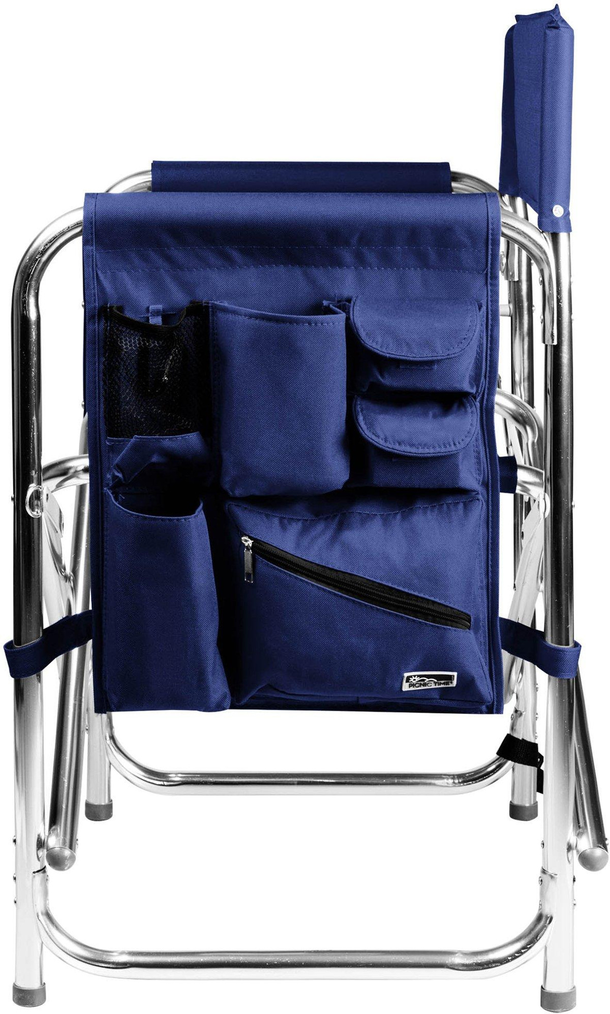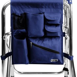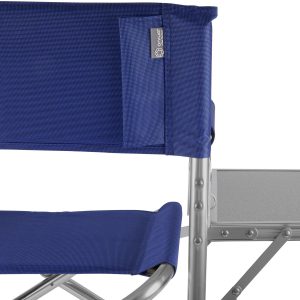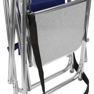 The Sports Chair by Picnic Time is lightweight & foldable with a sturdy aluminum frame and adjustable shoulder strap. Chair features extra-wide seat (19.5”) and is made of durable 600D polyester. Side table folds out and holds up to 10 lbs. Maximum weight capacity: 300 lbs.