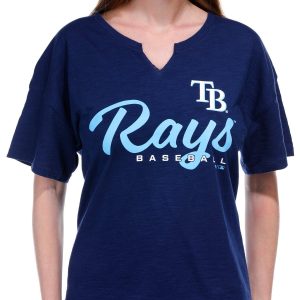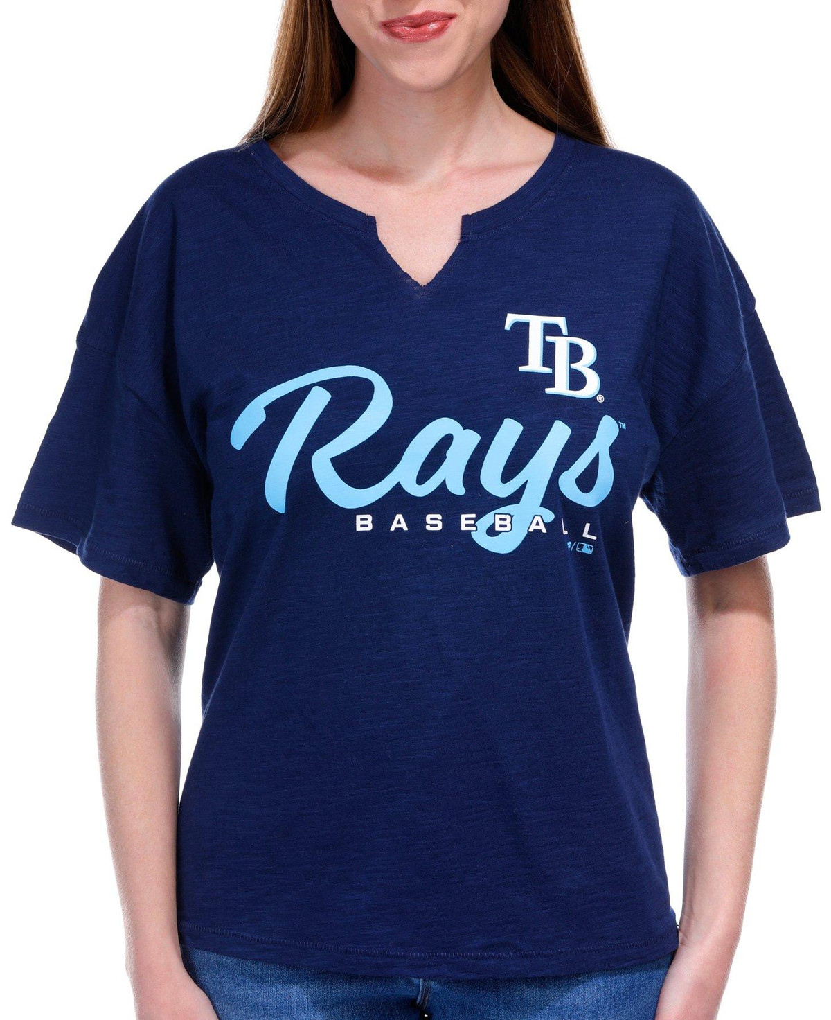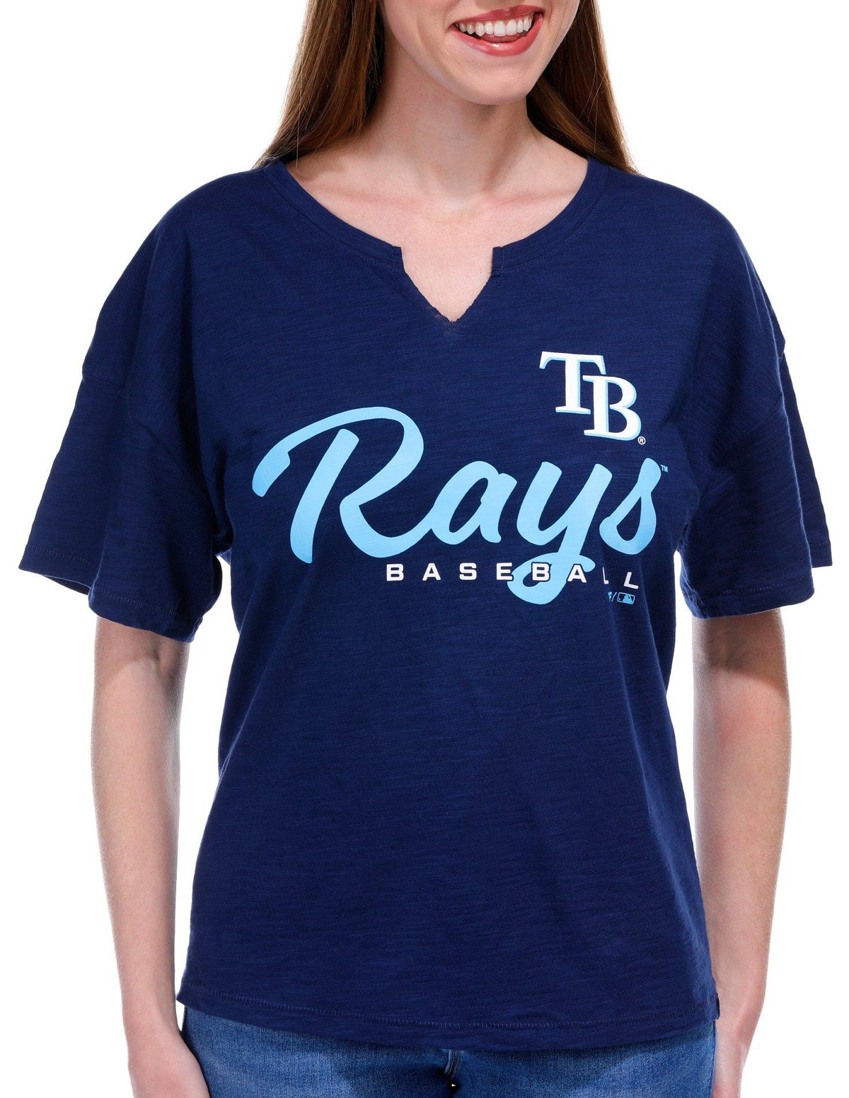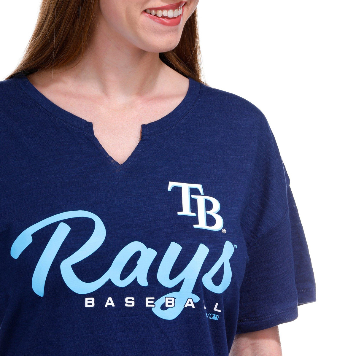 Dress stylishly on game day in this Tampa Bay Rays Fan Fave Stadium Slub Boxy T-Shirt by Fanatics. The relaxed fit and dropped shoulders provide a trendy look that pairs perfectly with high-waisted jeans or shorts. A flattering notch neckline and vibrant team details add the finishing touches to this chic Tampa Bay Rays tee.