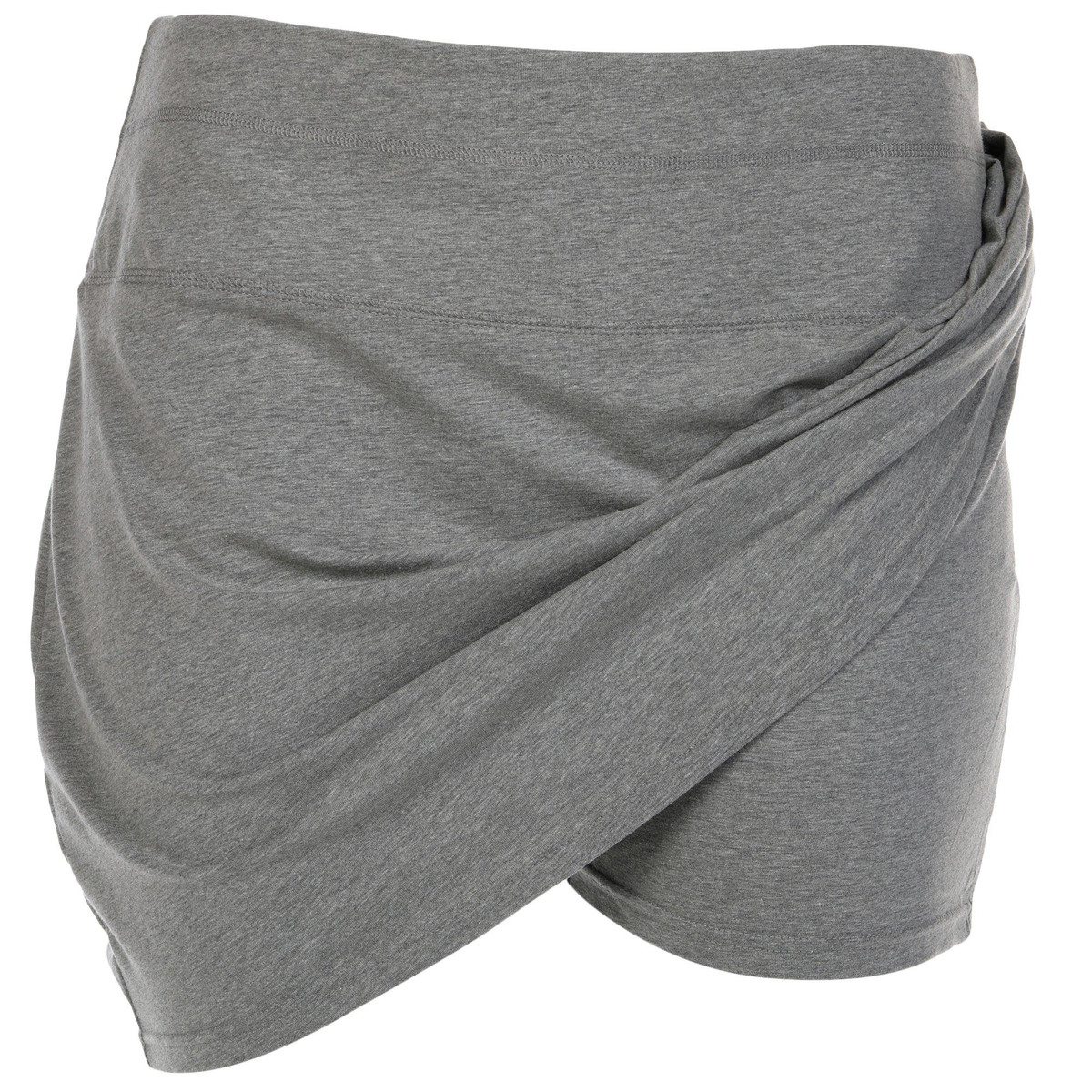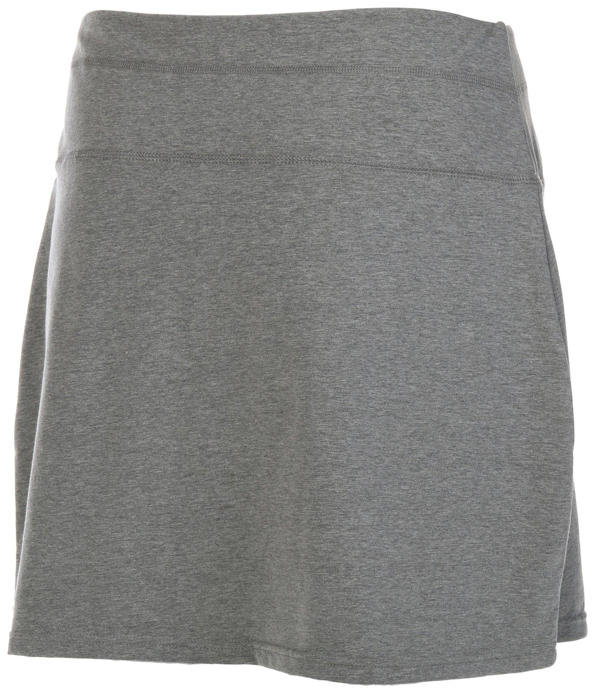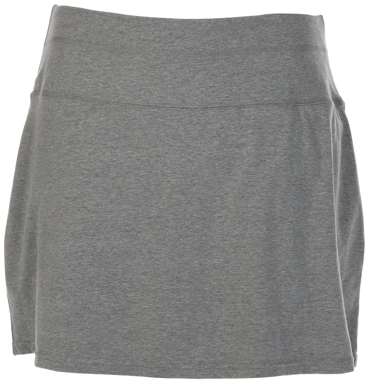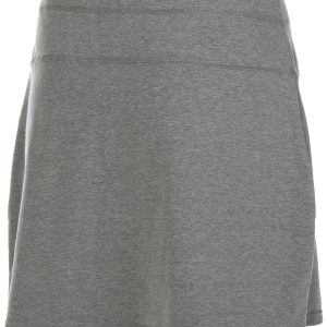 This pull on skort features an attached under shorts, a wide elastic waistband with invisible panel, and a solid color design. Measures approximately 17.5” in length.