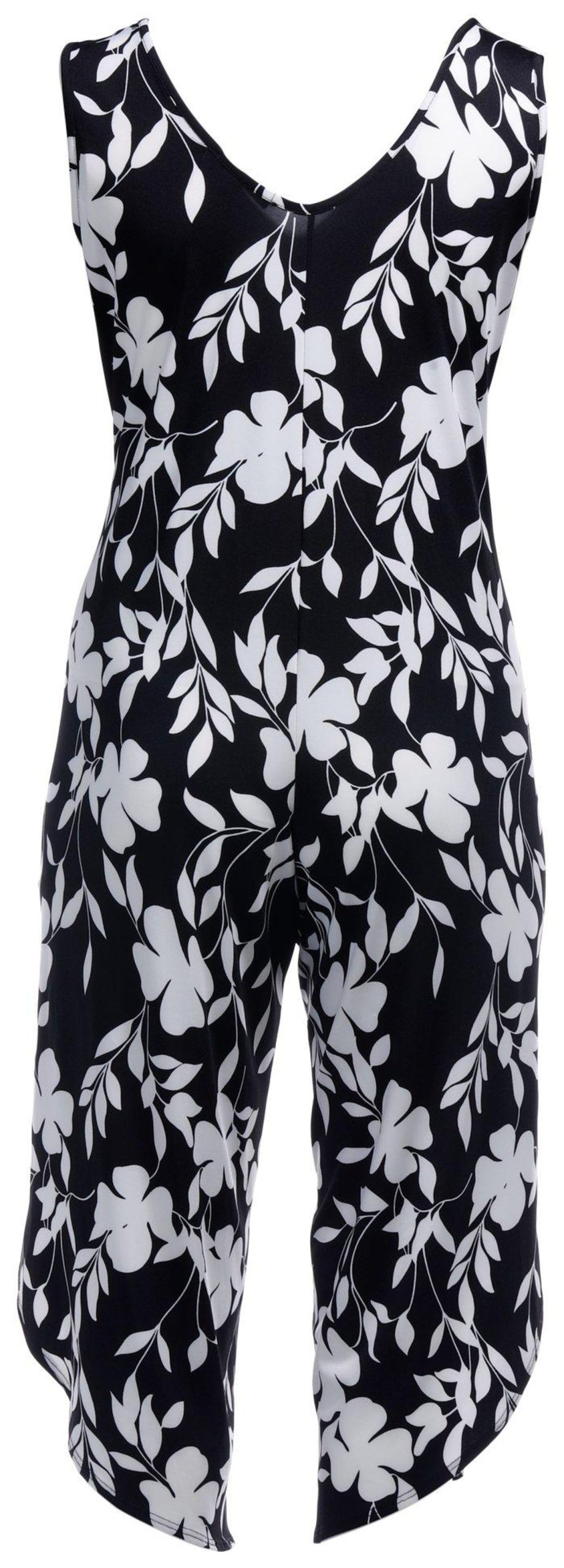 Discover casual elegance with this wide leg jumpsuit, featuring a chic print design on soft lightweight fabric, a v-neckline and a relaxed fit. Perfect for dinner out or weekend shopping trips, this jumpsuit effortlessly combines comfort and style. Fabrication is 95% Polyester, 5% Elastane. The length measures approximately 53 in.