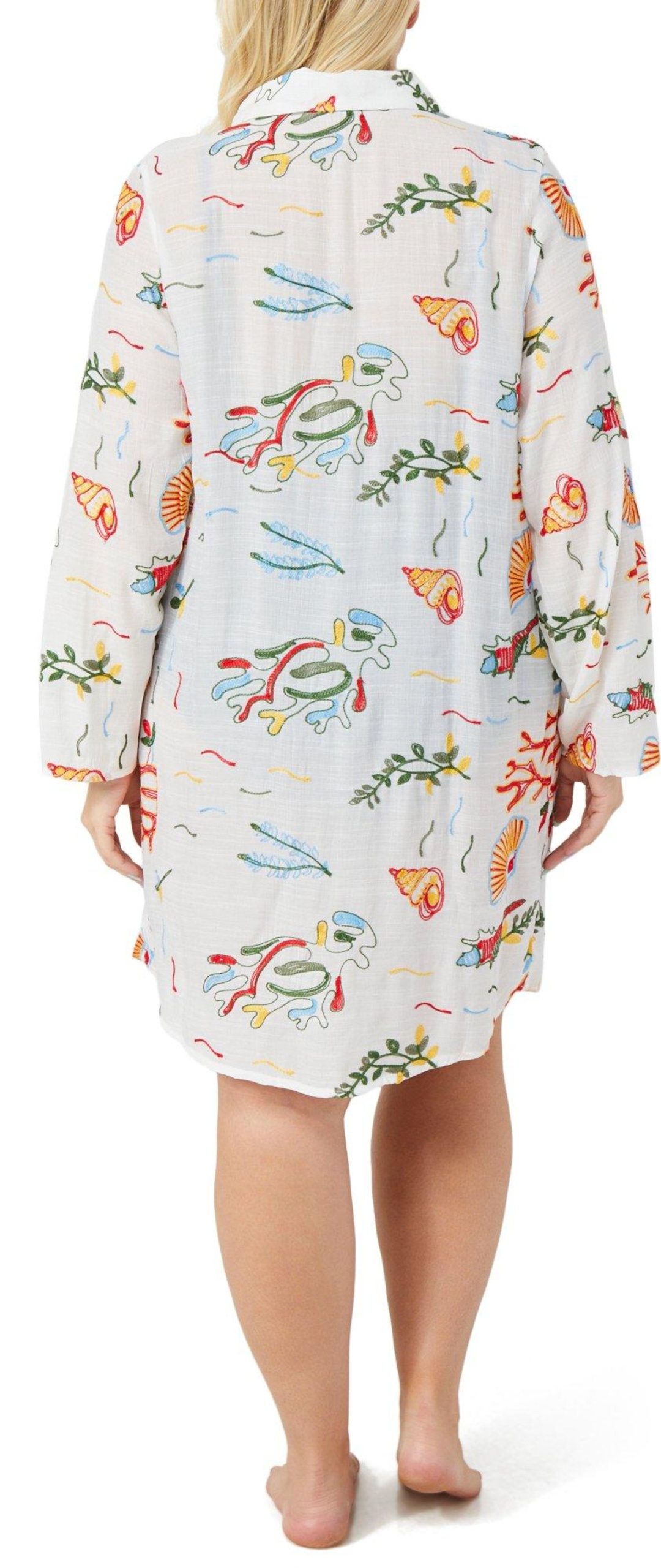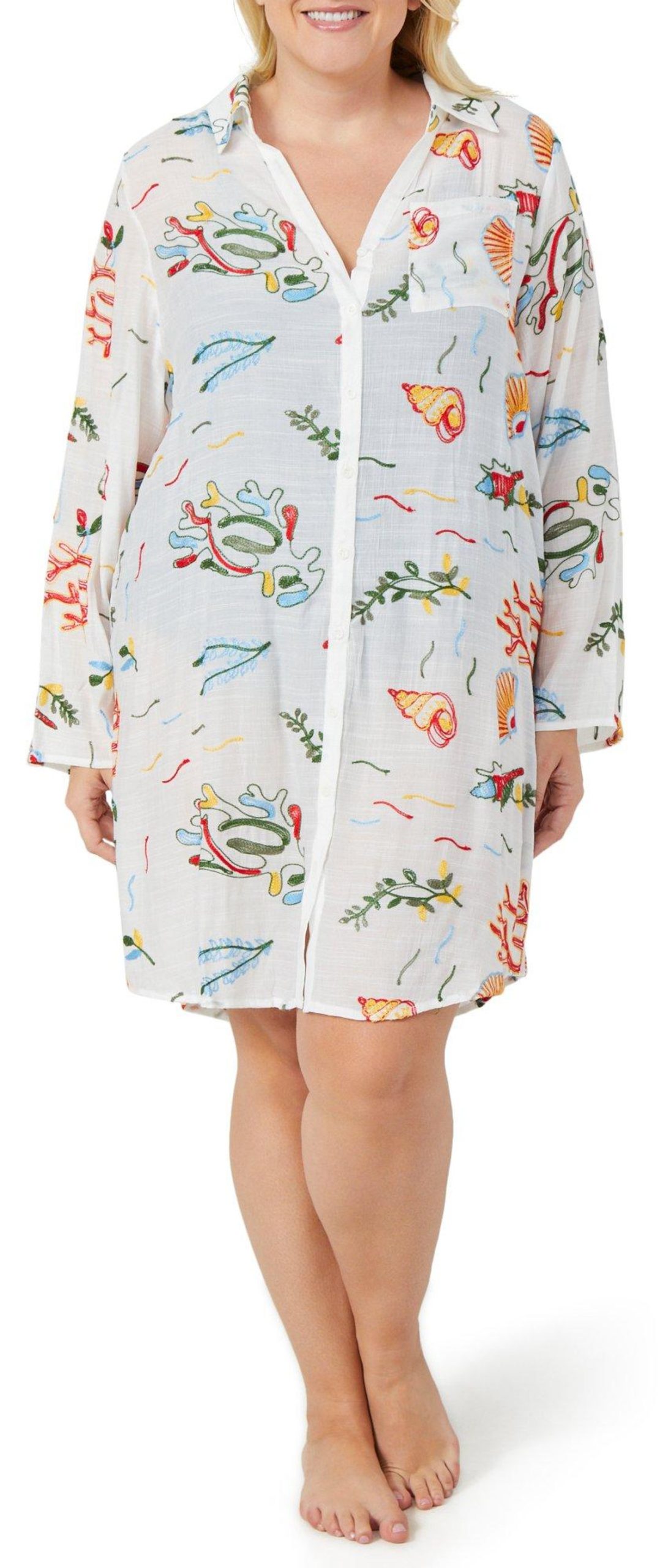 Brighten your beach days with this long sleeve cover up, featuring a buttoned front and eye catching coral embroidery for a pop of color. The open, airy design is perfect for layering, while the chest pocket adds a touch of casual charm. Lightweight and stylish, its your go-to for sun soaked adventures.