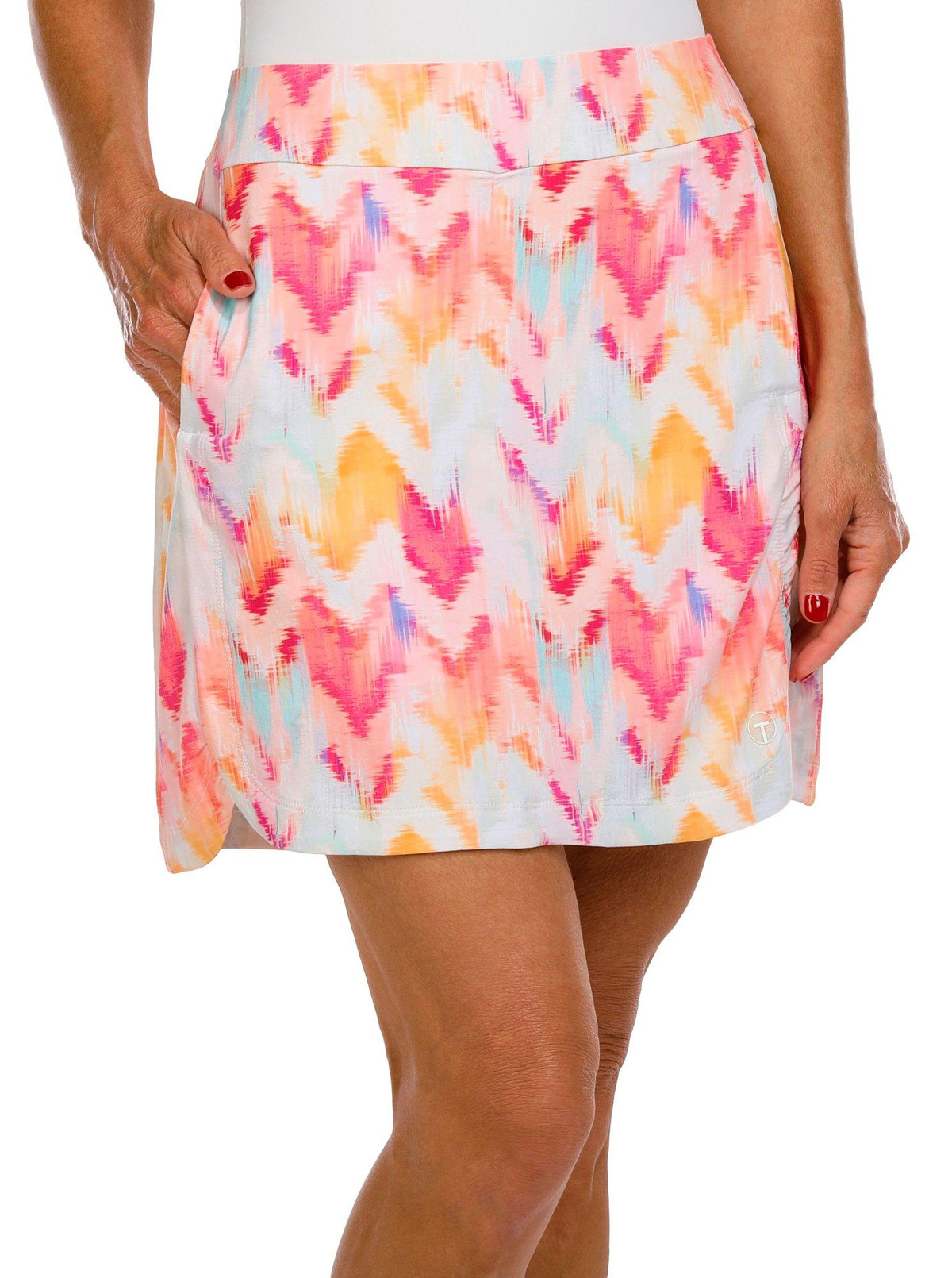 This women’s active skort features a colorful print with a pull on waistband, moisture wicking fabric, UPF 50 plus protection, and an antimicrobial design. It blends vibrant style with performance for sunny days on the move. Fabrication 84% nylon, 16% spandex