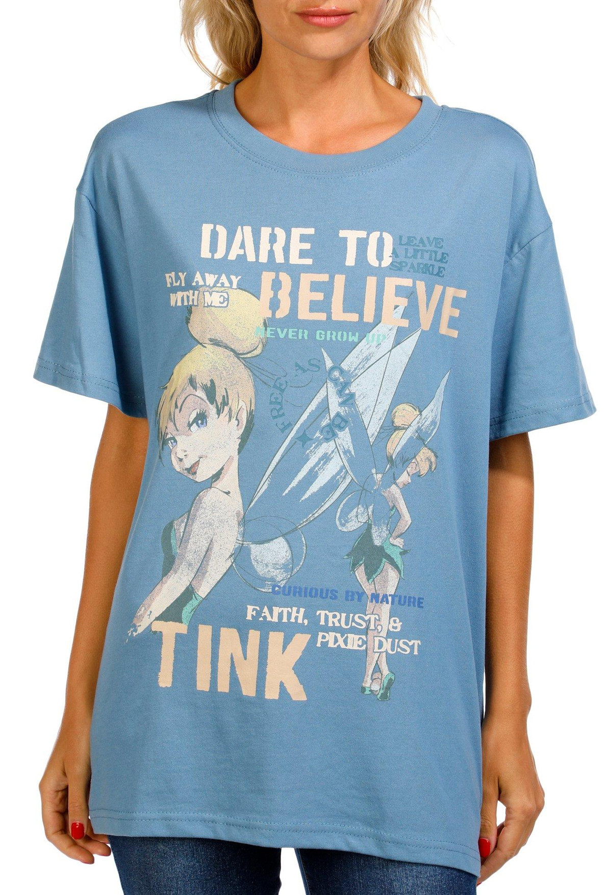 Let your imagination soar with this Juniors Tinker Bell Dare to Believe Graphic T-Shirt. Crafted from a soft cotton-polyester blend, this magical tee showcases a whimsical Tinker Bell design, complete with short sleeves and a classic crew neckline. Whether you’re heading to the parks or enjoying a laid-back day out, this shirt blends Disney charm with everyday comfort, making it a must have for every fan. Fabrication is 60% cotton, 40% polyester. Top length measures approximately 27 in.