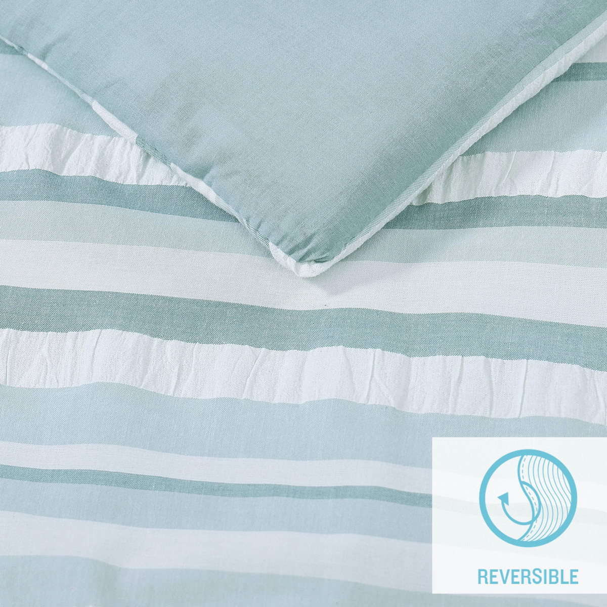 Inspired by the colors of ocean waves, this beautiful blue and white stripe weave creates a cool and refreshing on the new Tommy Bahama clearwater cay comforter set. The all-cotton yarn dye comforter set features a polyester fill and is machine washable for easy care. Set includes 1 comforter and 2 shams